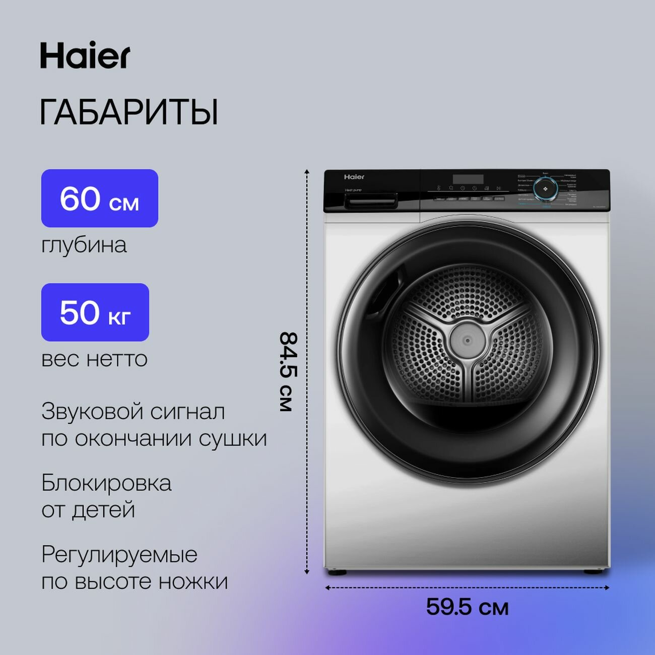 Сушильная машина Haier HD90-A2929AS, сушка с тепловым насосом, контейнер для конденсата, ворсовый фильтр