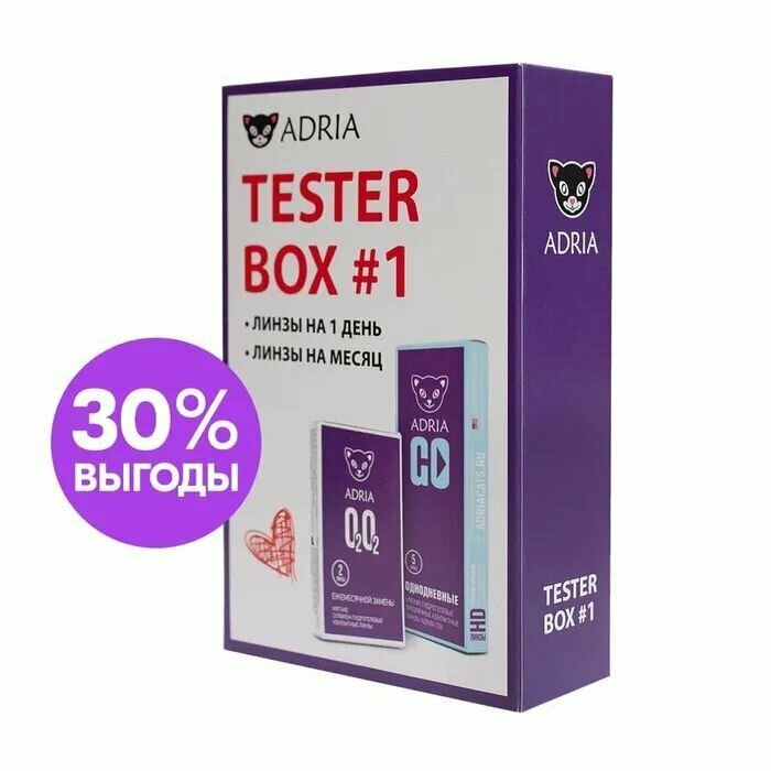Контактные линзы Adria Tester Box #1 ( Adria О2О2 ежемесячные 2шт, Adria GO однодневные 5шт.), -1,00 / 14,2 / 8,6