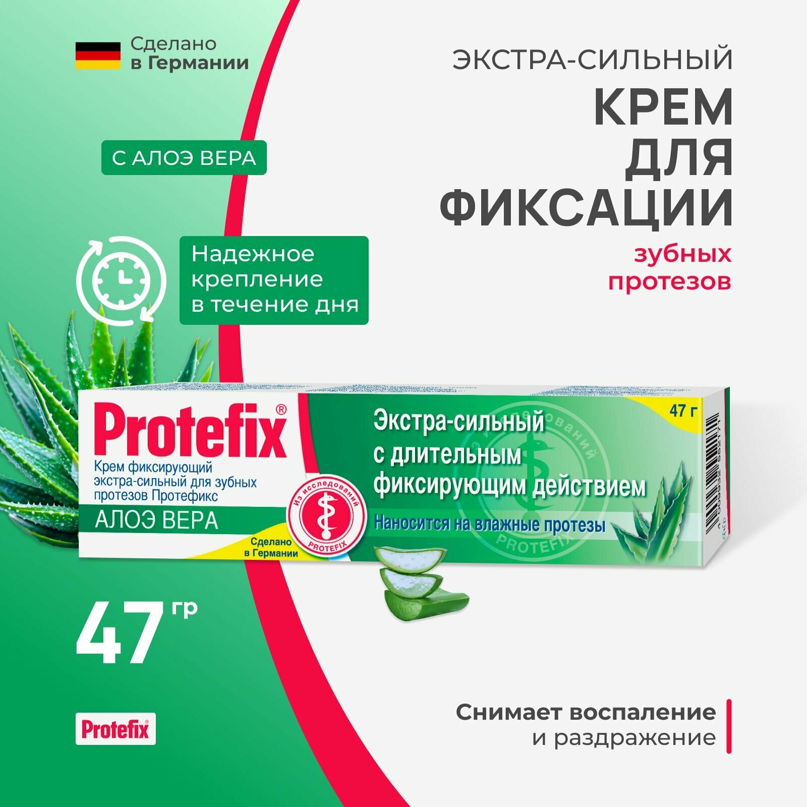 Протефикс крем фиксирующий для зубных протезов Алоэ вера 40мл/47г экстра-сильный