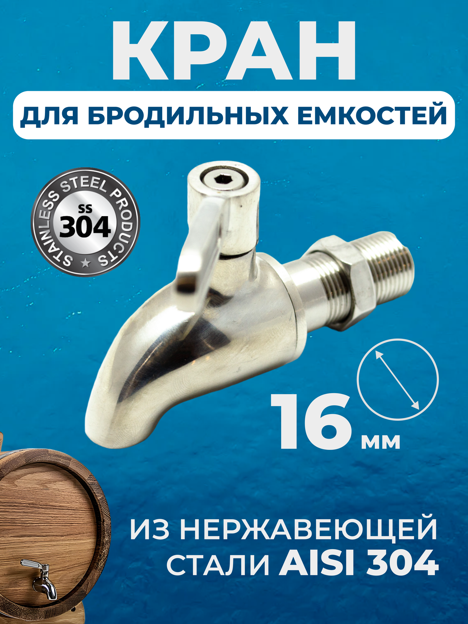 Кран из нержавеющей стали для бродильных ёмкостей 16 мм интересное: