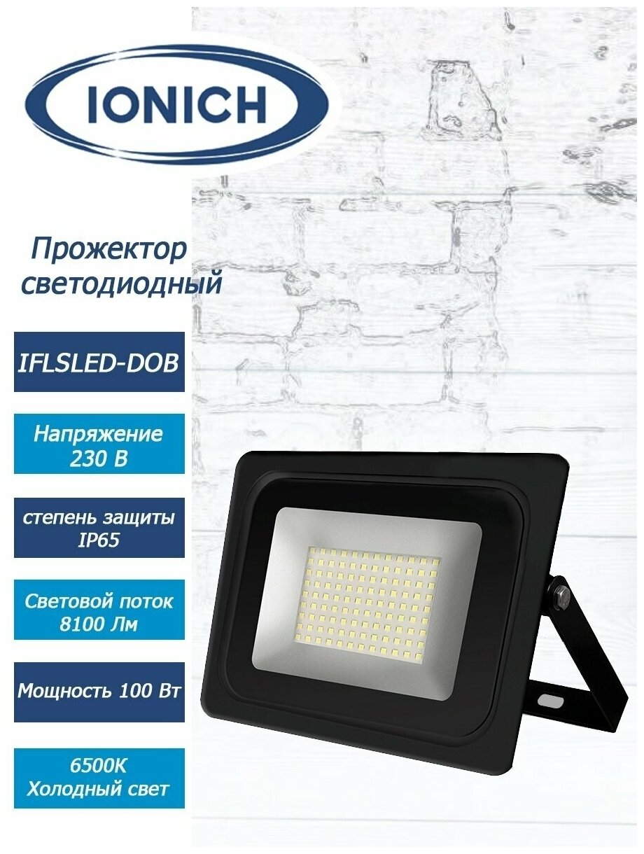 Купить Прожектор светодиодный IONICH IFLSLED-DOB-100W-865-BL-IP65, 6500К, холодный свет
