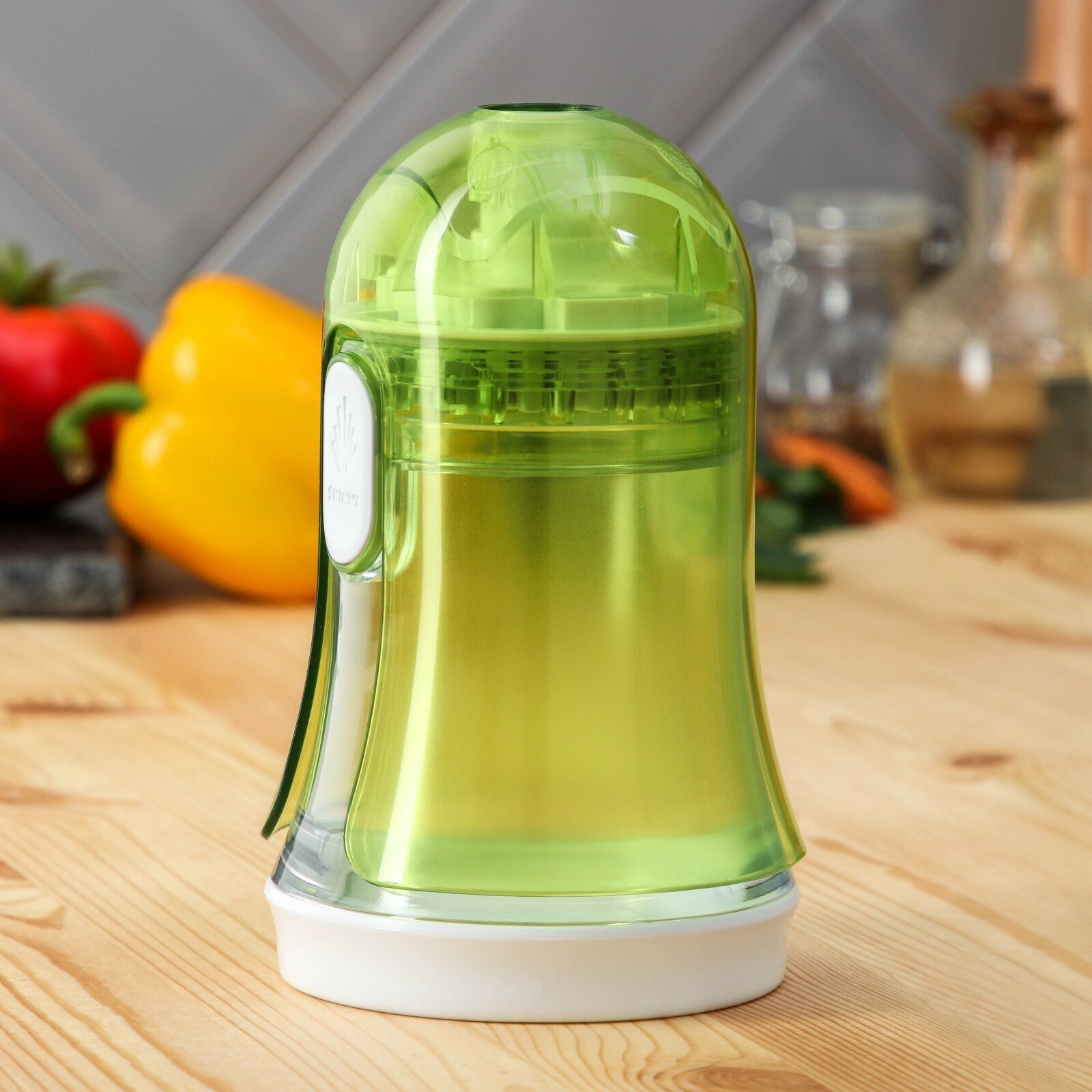 Овощерезка Доляна, 2 сменные насадки, съёмный пушер, 10,6×10,6×16,6 см, цвет зелёный, белый