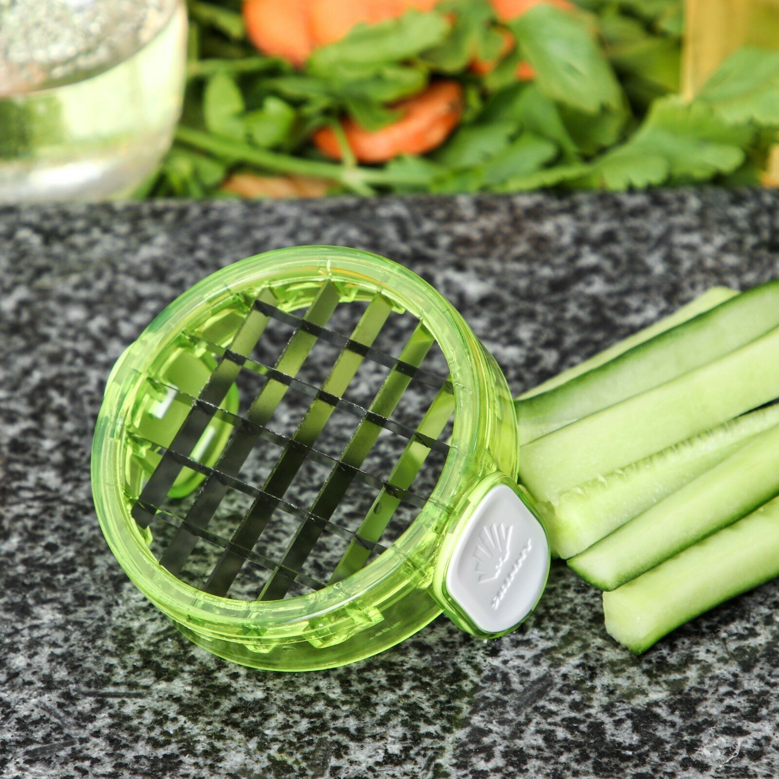 СохранитьОвощерезка Доляна, 2 сменные насадки, съёмный пушер, 10,6х10,6х16,6 см, цвет зелёный, белый интересное: