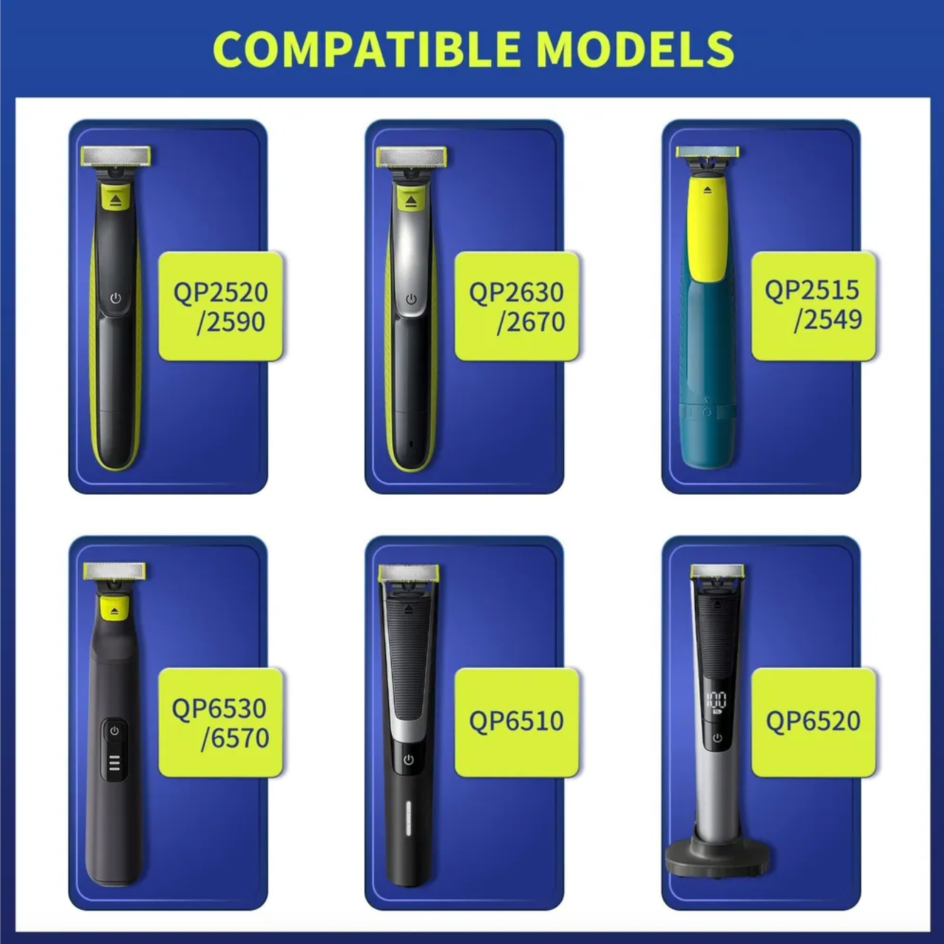 | Дополнительная информация | Подходит для всех моделей бритв Philips серии OneBlade: QP14xx, QP25xx, QP26xx, QP27xx, QP28xx) и OneBlade Pro: QP65xx, QP66xx. Qp2520, Qp2523, Qp2530, Qp2630, Qp6510, Qp6520 и других |