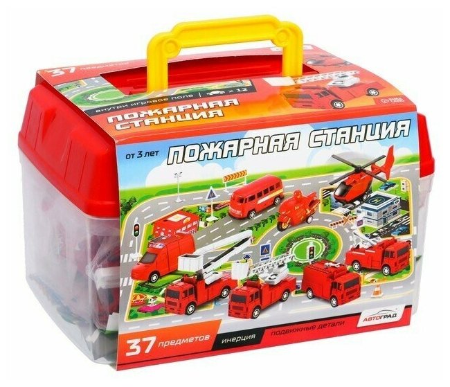 Набор машинок Автоград Пожарная станция, 12 штук, дорожные знаки, игровое поле (ZY1227418)