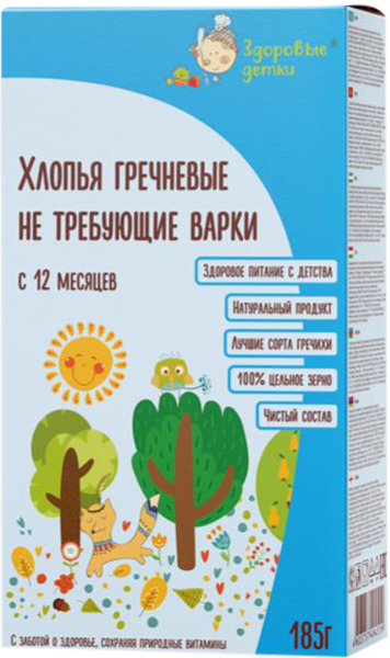 Хлопья гречневые (не требующие варки) Здоровые детки, 185 г.