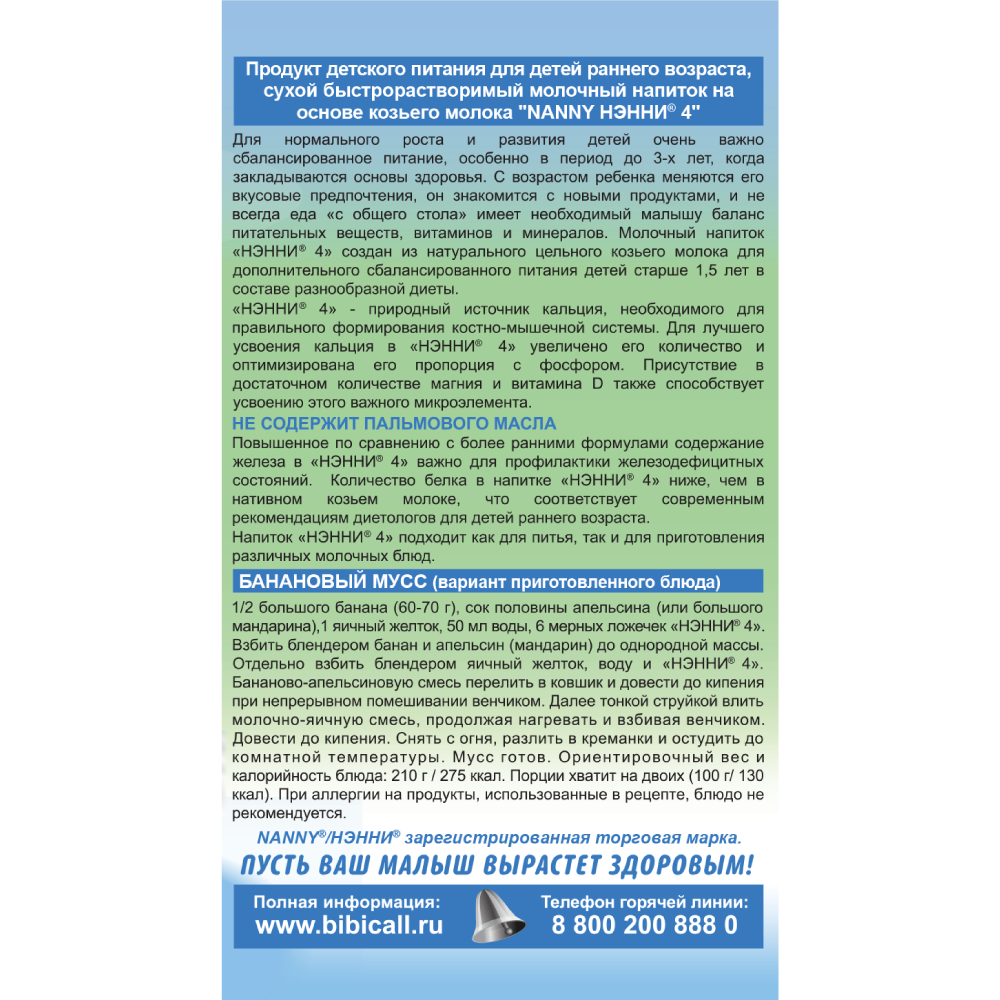 Нэнни 4 Сухой Молочный Напиток на основе Козьего Молока {с 18 мес} 800г.