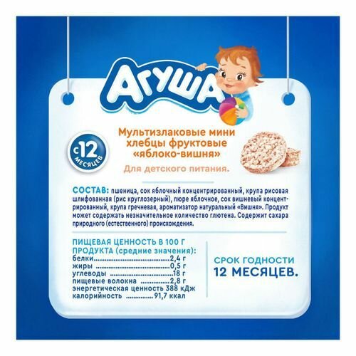 Хлебцы Агуша 30г мультизлаковые яблоко вишня с 12 месяцев интересное:
