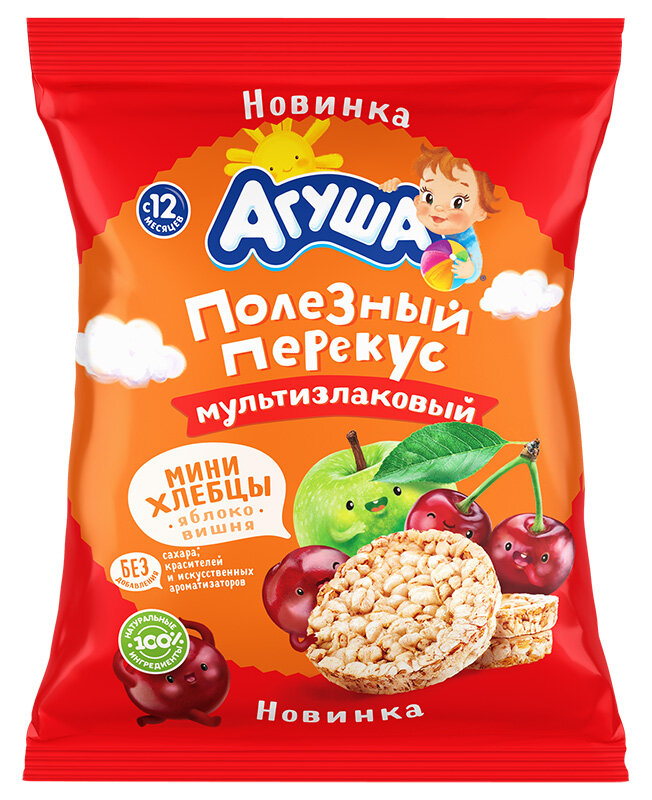 Купить Хлебцы Агуша 30г мультизлаковые яблоко вишня с 12 месяцев