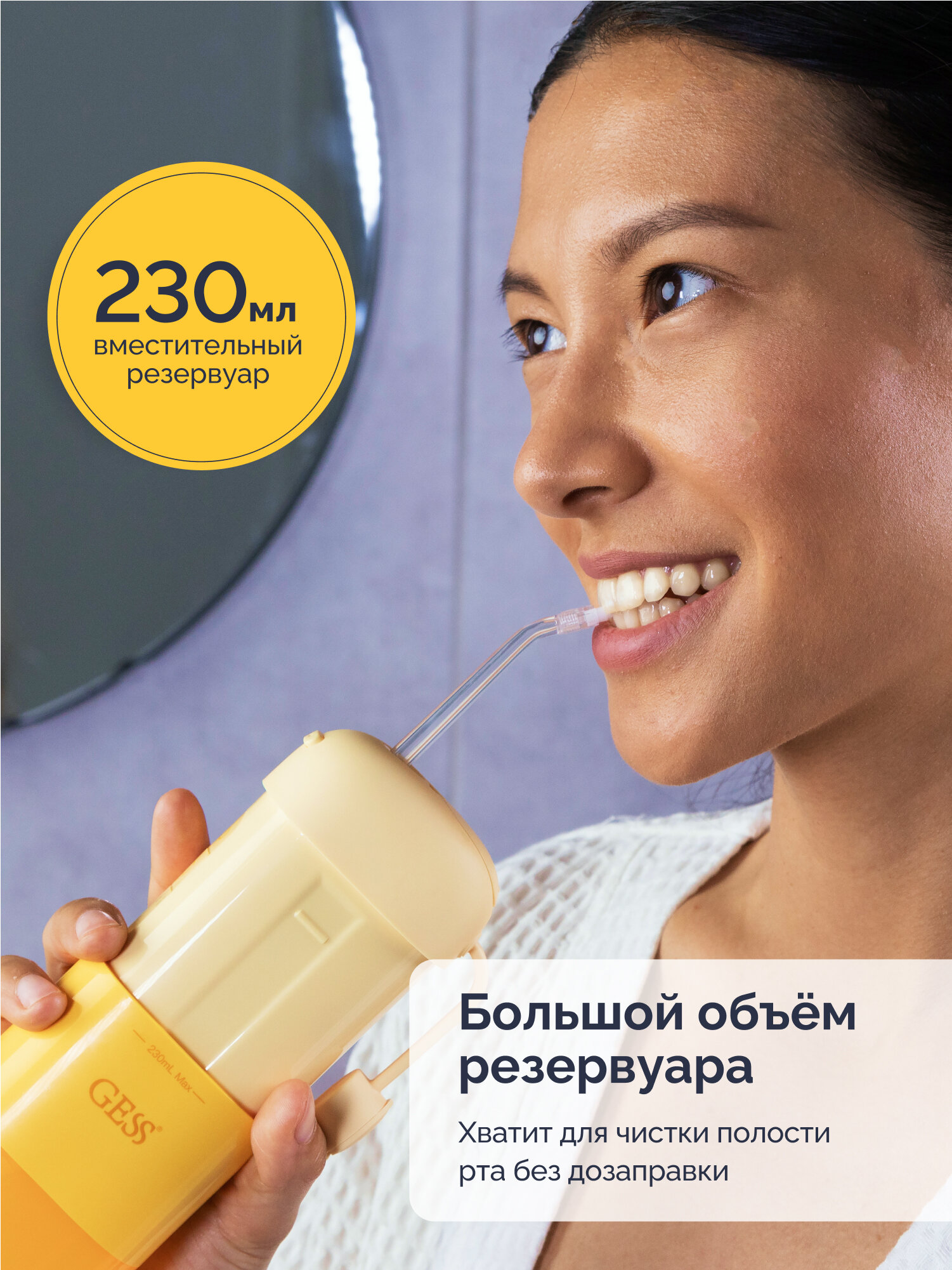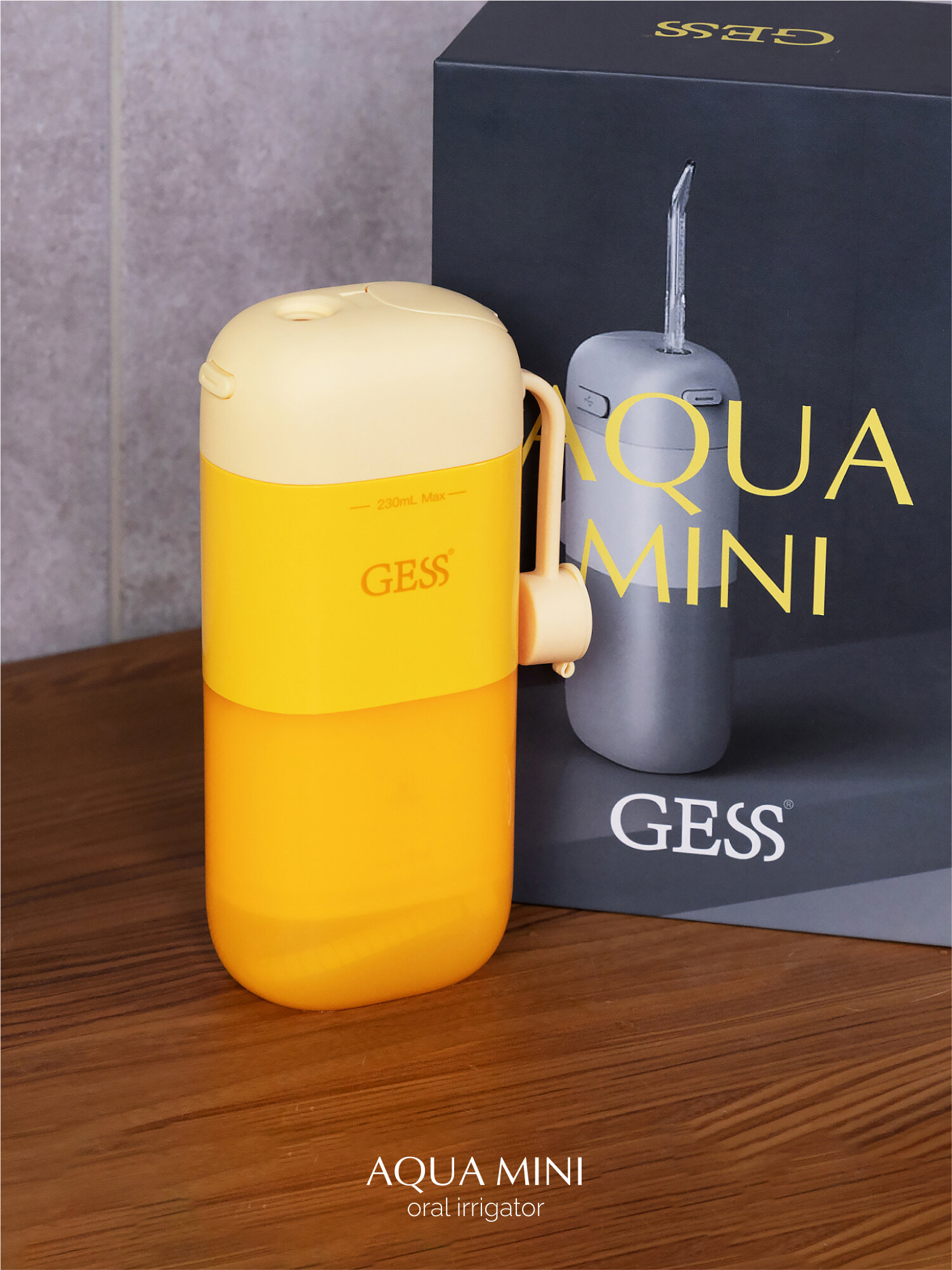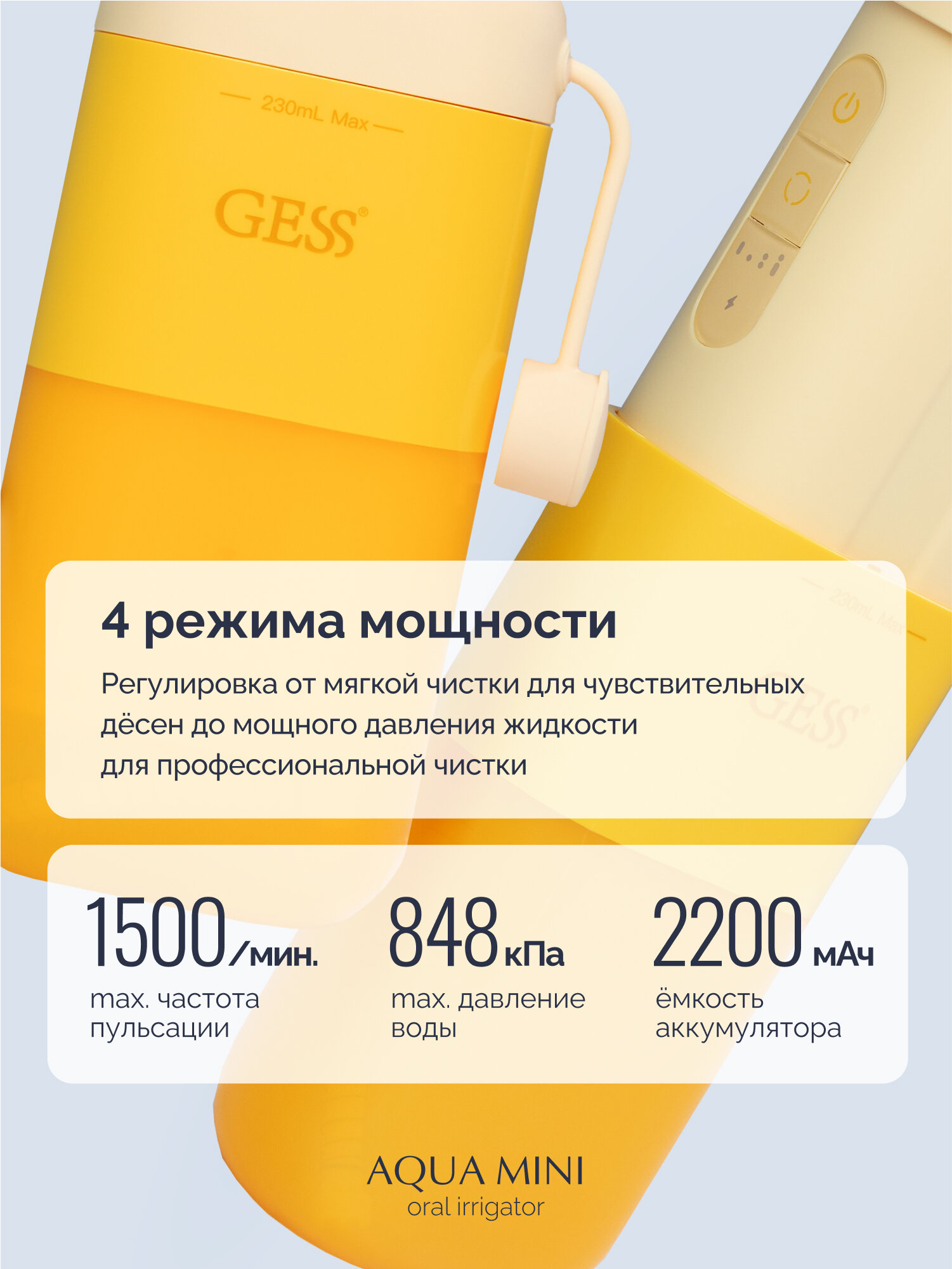 Ирригатор для полости рта портативный GESS Aqua Mini беспроводной медицинский ирригатор, 3 насадки, ёмкость 230 мл, 138-848 кПа, оранжевый интересное: