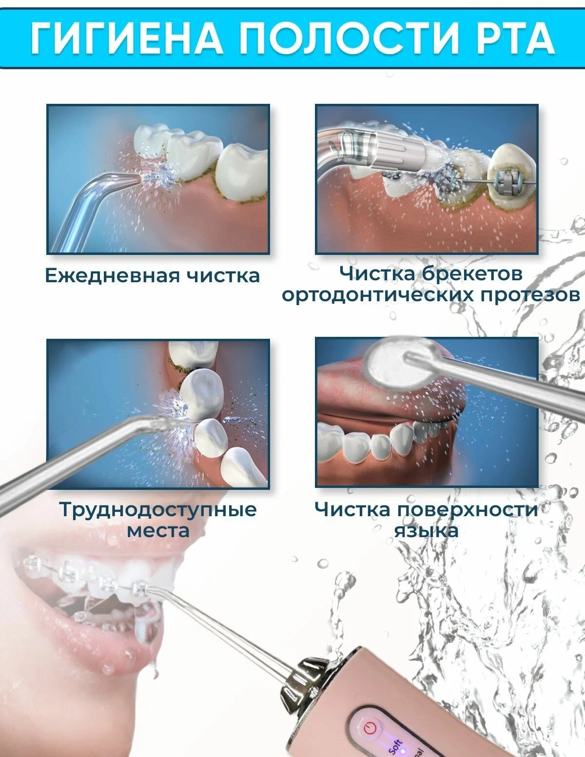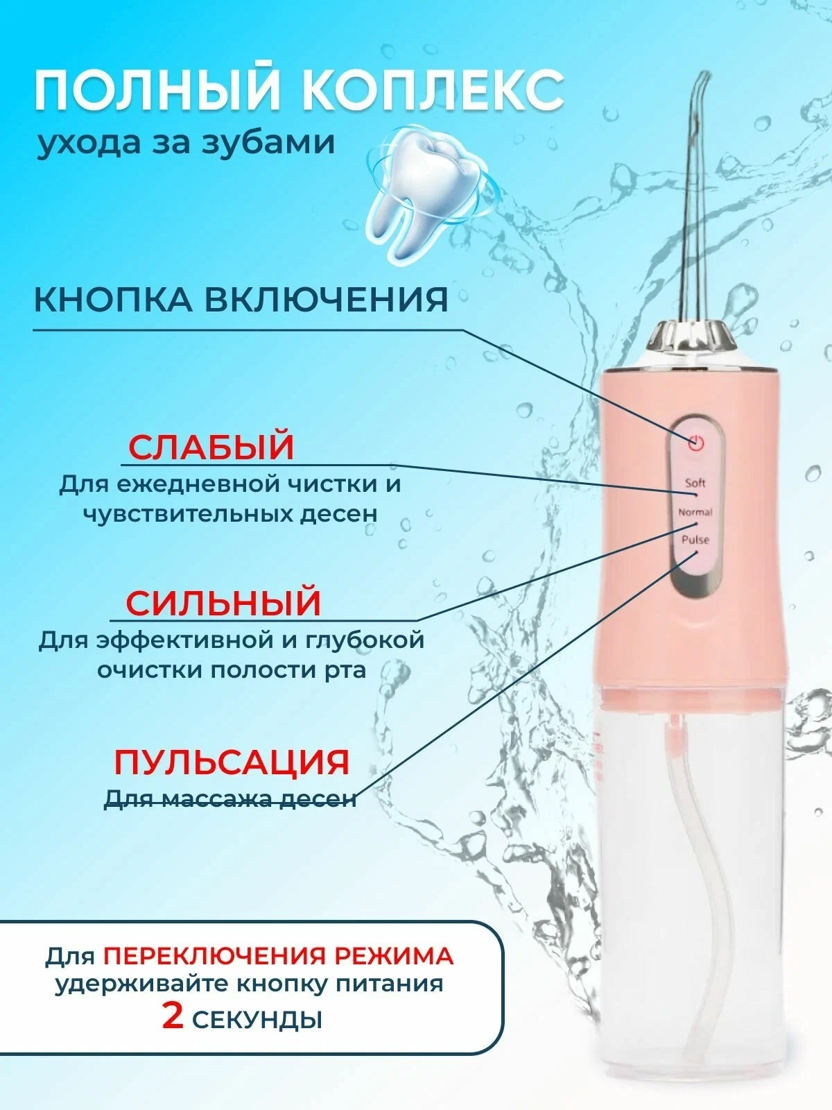 Профессиональный прибор /Ирригатор для ухода за зубами и дёснами