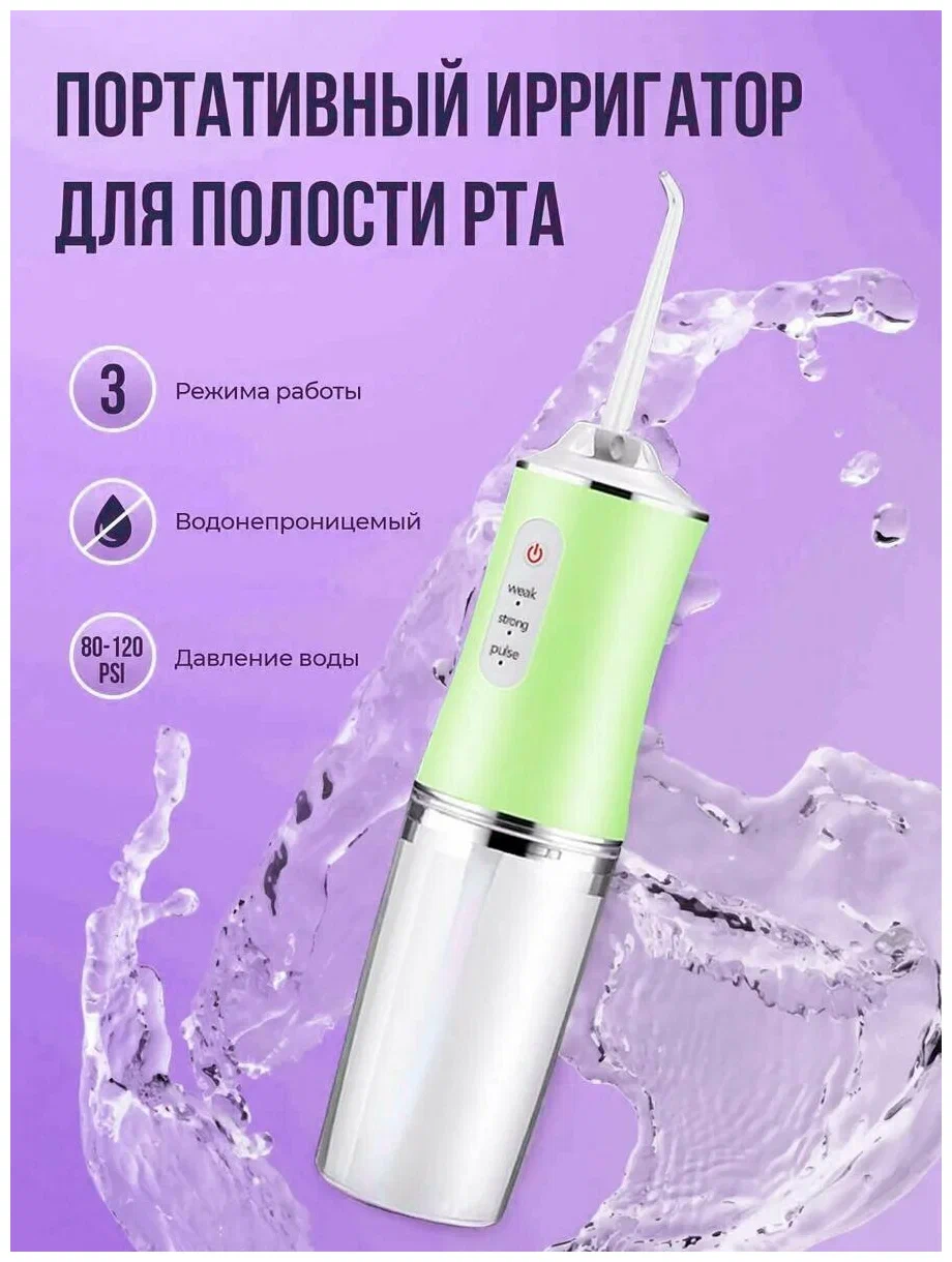 Портативный ирригатор для полости рта, брекетов, зубов, десен, салатовый, 220мл интересное: