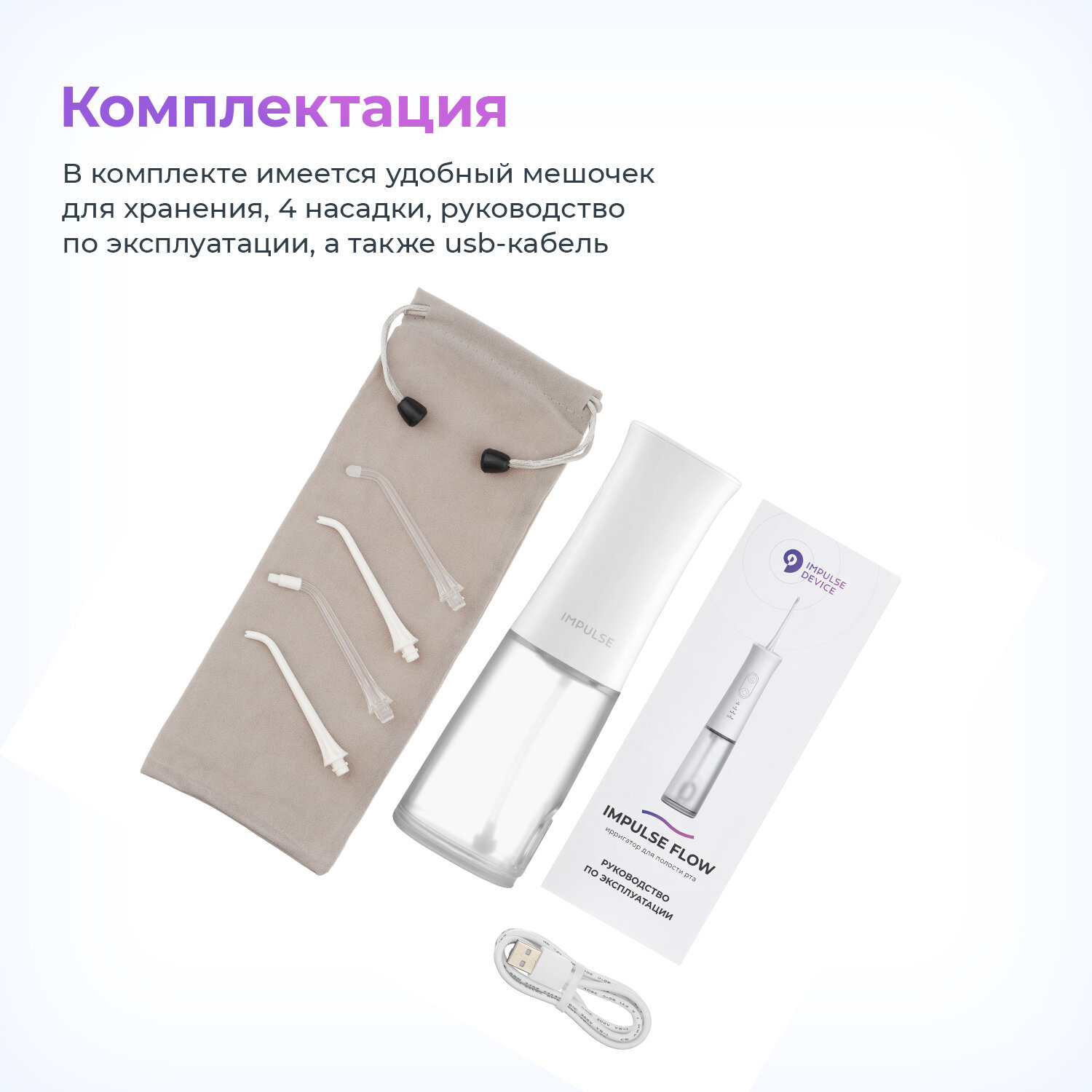 Ирригатор для полости рта Impulse Flow беспроводной, цвет белый интересное: