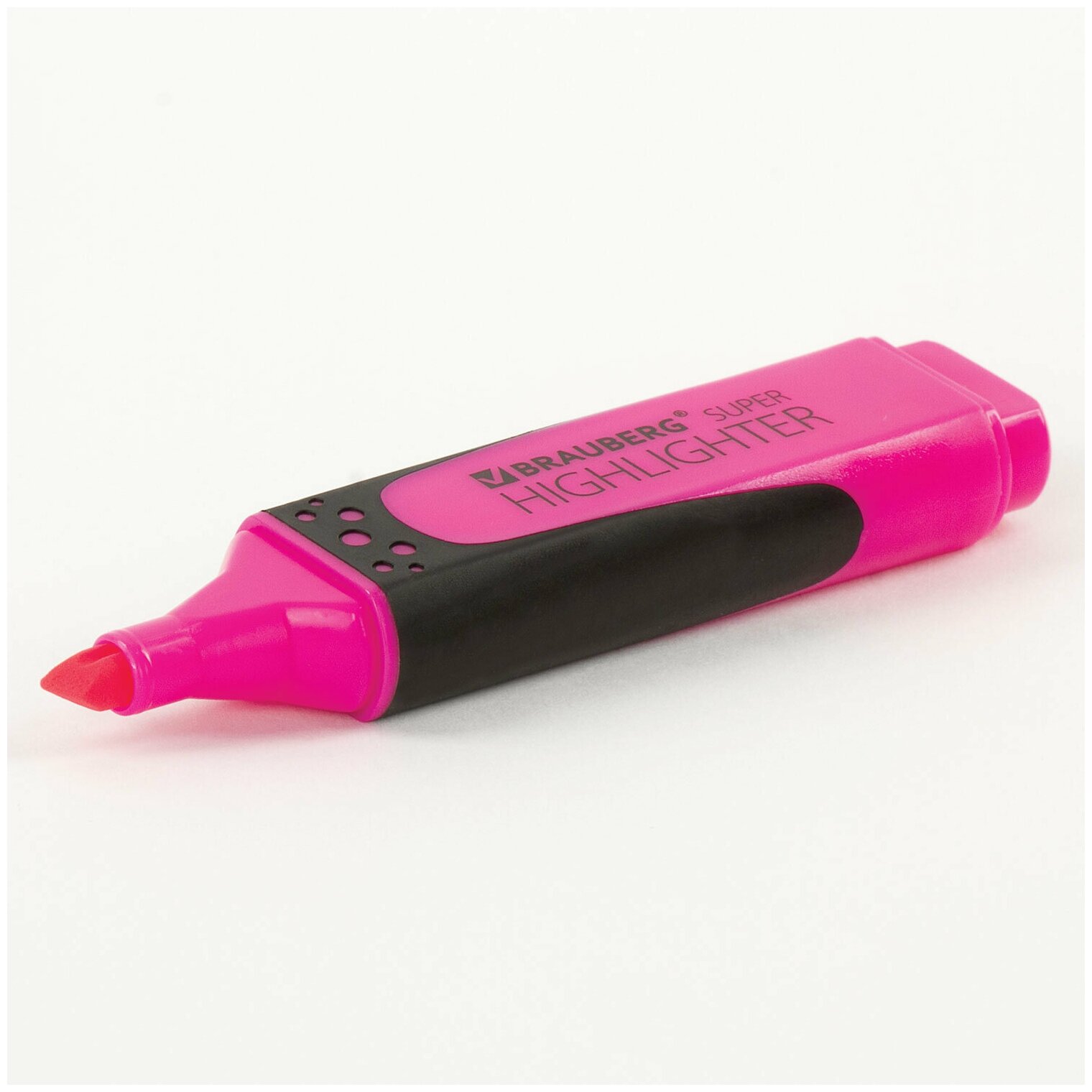 Купить Текстовыделитель BRAUBERG «SUPER», розовый, прорезиненный корпус, линия 1-5 мм, 151740