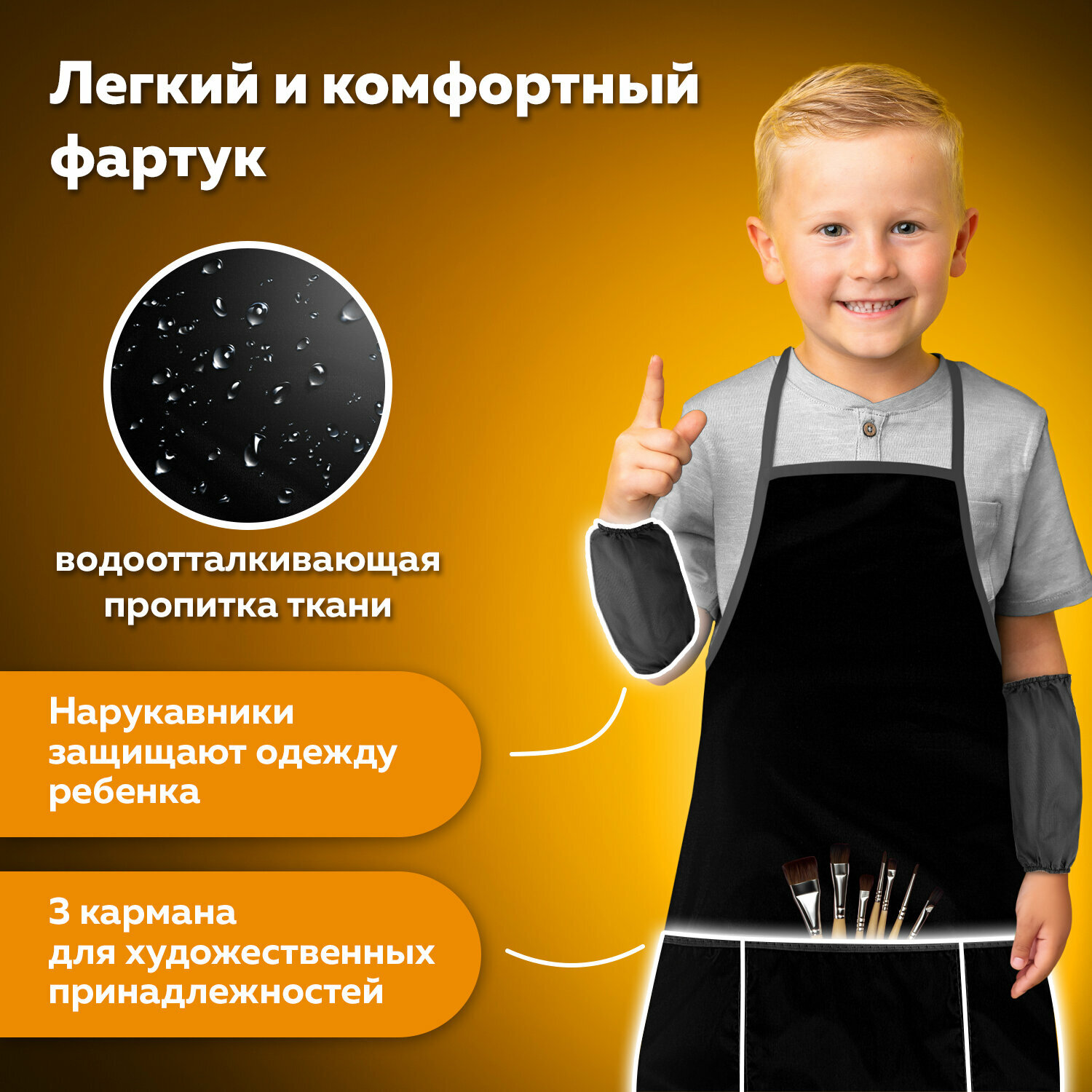 Фартук с нарукавниками для уроков труда Пифагор, увеличенный размер, 45х60 см, черный, 271092