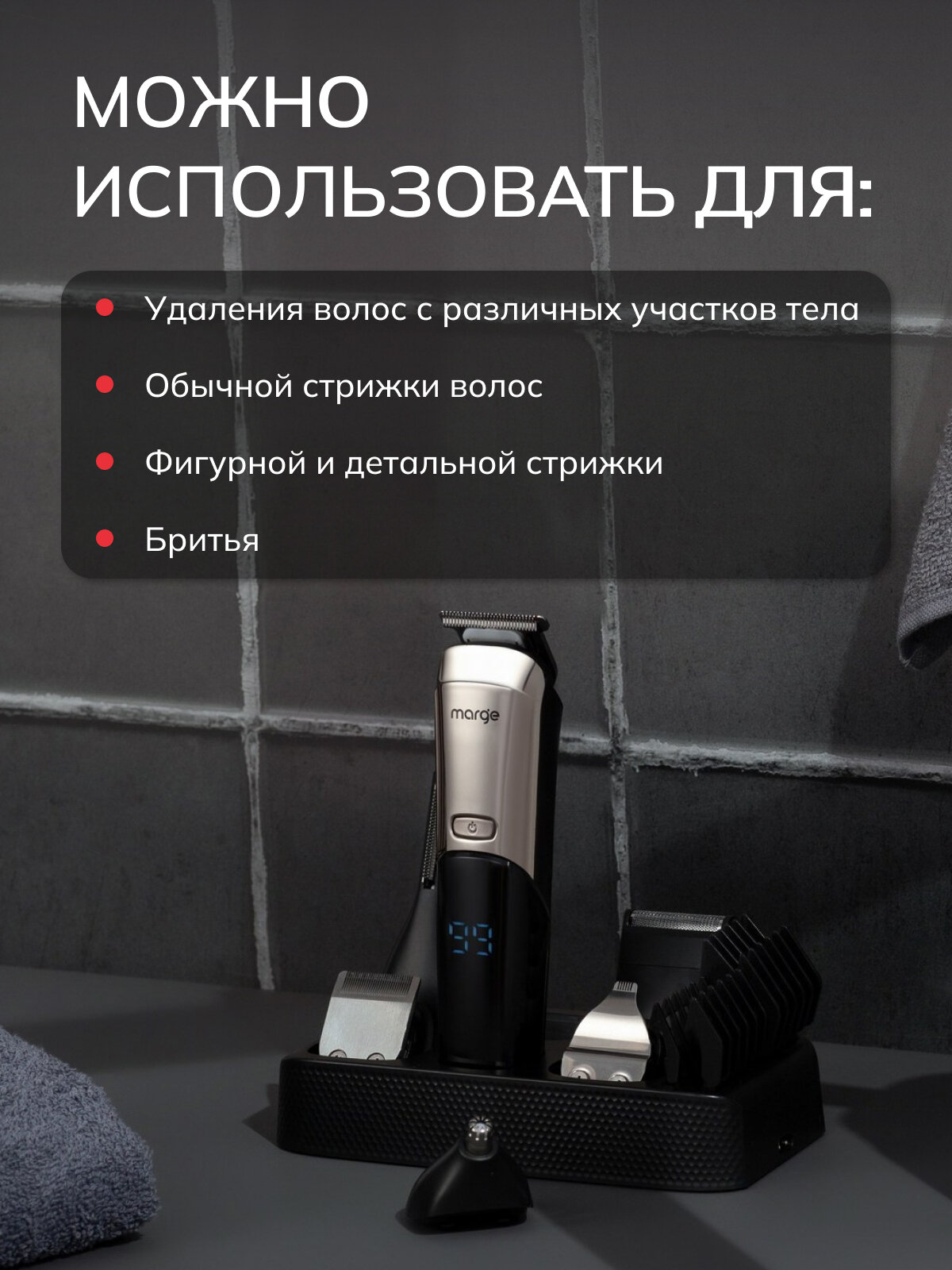 Профессиональный мультитриммер 12 в 1 Marge RS-301SL (серебристый) интересное: