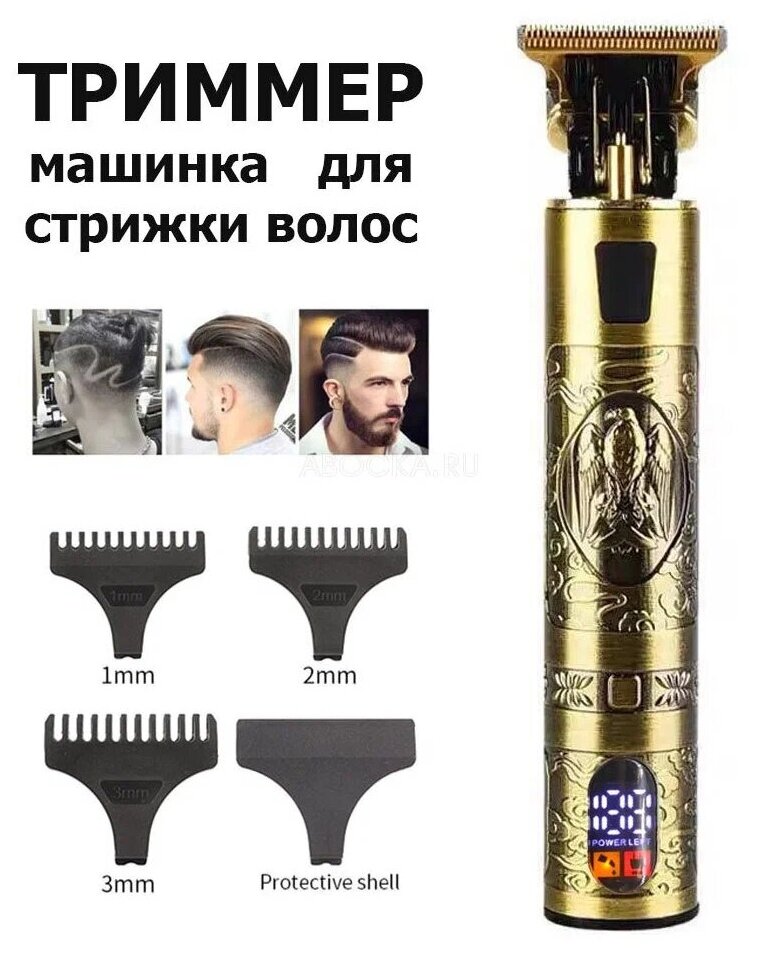 Профессиональный триммер Pro , уход за лицом, машинка для стрижки волос Pro, для оконтовки, набор, для мужчин,с led дисплеем, золотой , UP+ интересное: