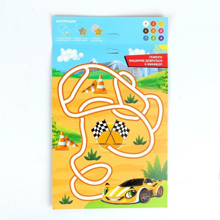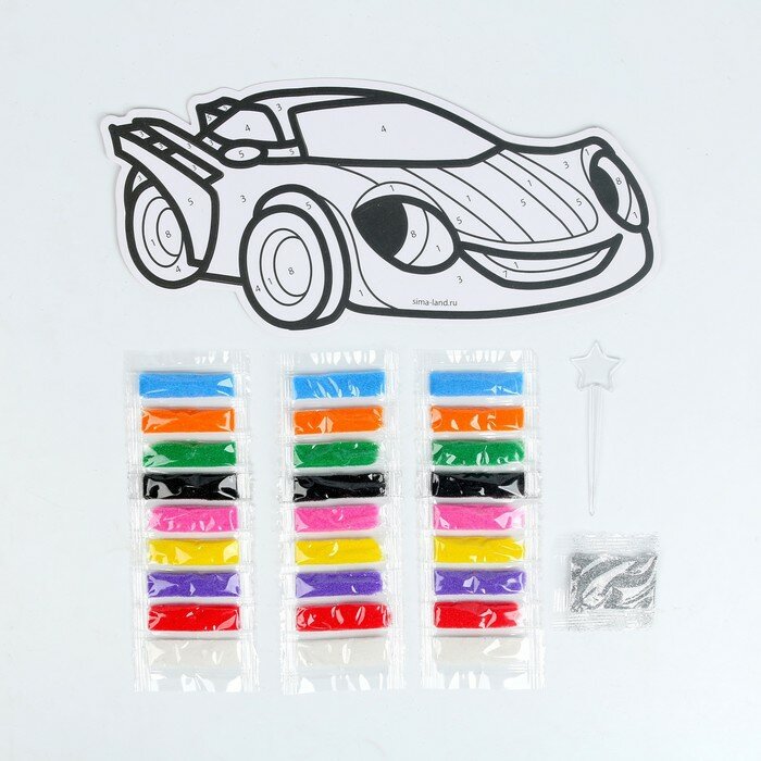 Набор для творчества: фреска-магнит, блёстки, песок, раскраска, Тачки