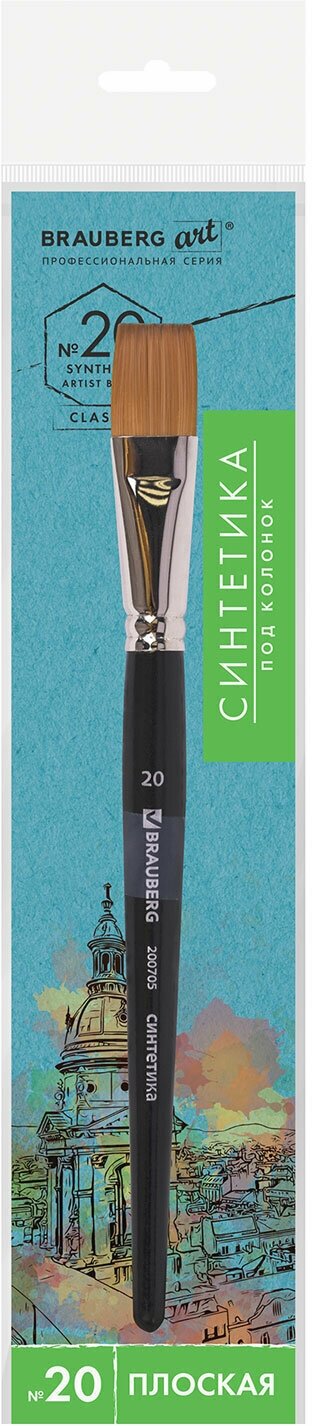 Кисть художественная профессиональная BRAUBERG ART "CLASSIC", синтетика мягкая, под колонок, плоская, № 22, короткая ручка, 200706 ( 1 штука!!! )