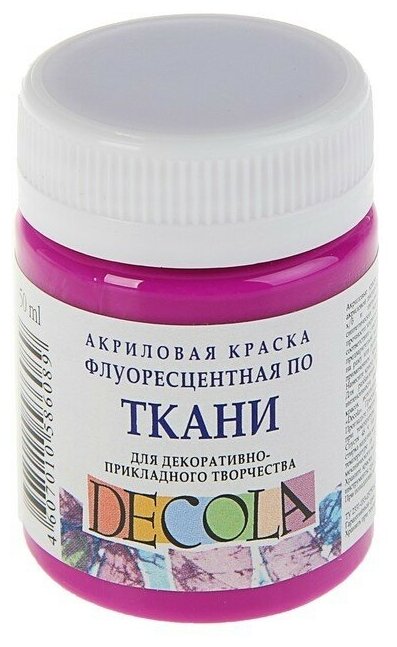 Краска по ткани, банка 50 мл, Decola, Fluo флуоресцентная Фиолетовая (акриловая на водной основе)