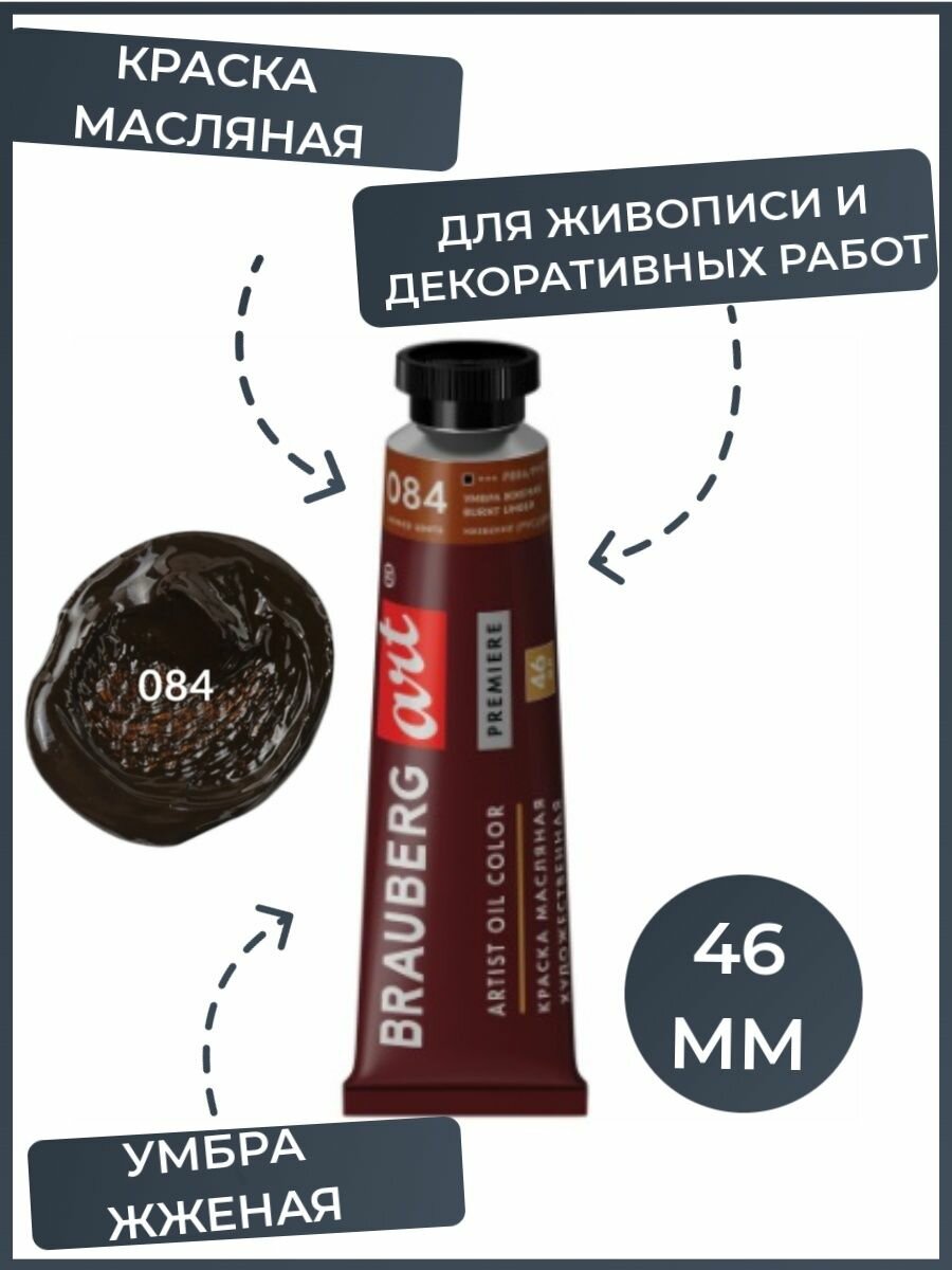 Краска масляная художественная BRAUBERG ART PREMIERE, 46 мл, проф. серия, красно-коричневая, 191441 (арт. 191441)