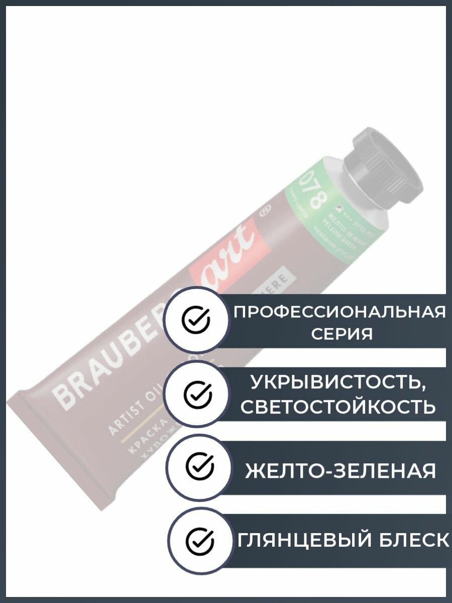 Краска масляная художественная BRAUBERG ART PREMIERE, 46 мл, проф. серия, желто-зеленая, 191453