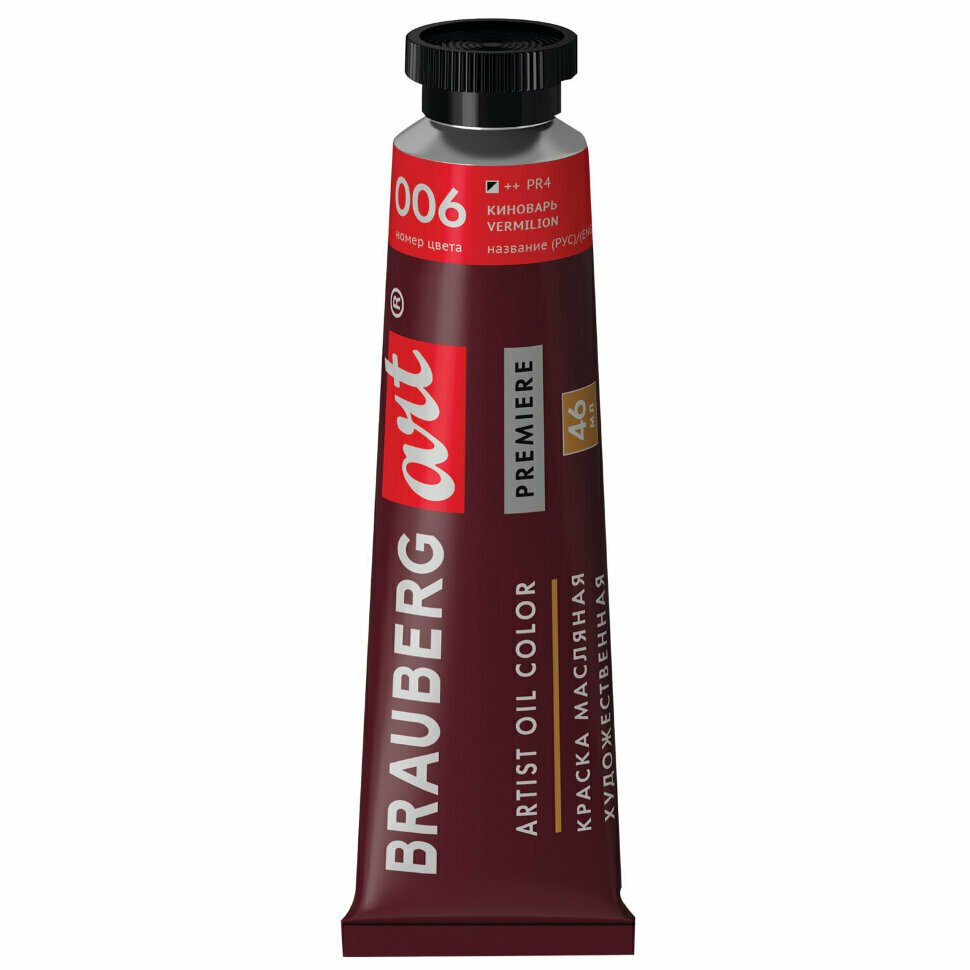Краска масляная художественная BRAUBERG ART PREMIERE, 46 мл, проф. серия, киноварь, 191406