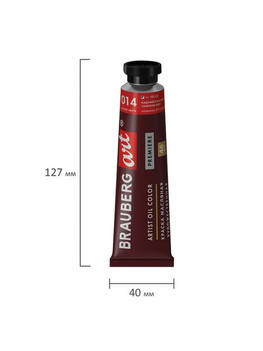 Купить Краска масляная художественная BRAUBERG ART PREMIERE, 46 мл, проф. серия, кадмий красный, 191408 (цена за 1 ед.товара)
