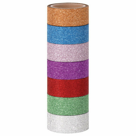 Клейкие ленты полимерные для скрапбукинга и декора с блестками, интенсив, 15 мм * 3 м, 7 цветов, комплект, остров сокровищ, 661715, 1 шт