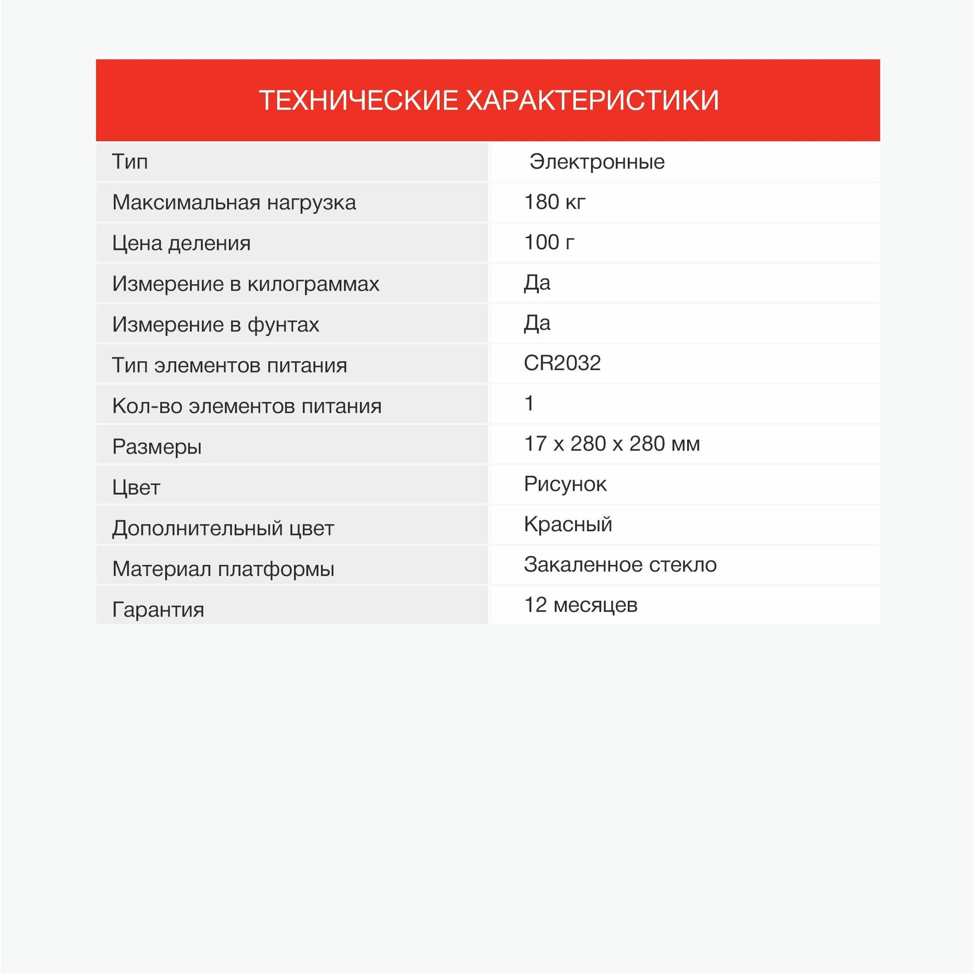 Весы напольные электронные Starwind SSP6035 макс.180кг рисунок/красный интересное:
