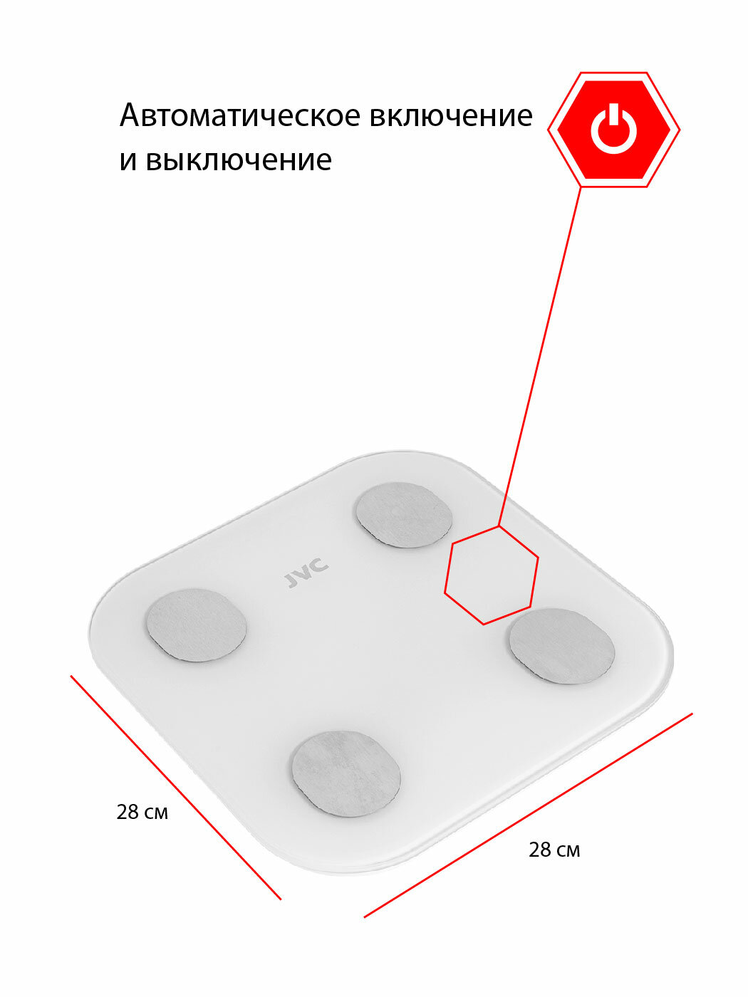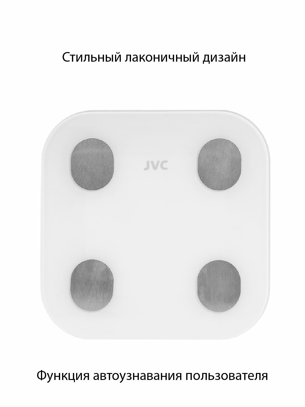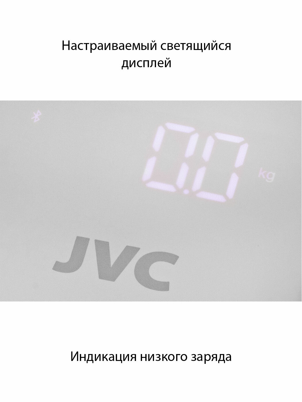 SMART напольные весы JVC управление со смартфона, до 180 кг, с функцией BMI измерение жира, жидкости, мышечной и костной ткани интересное: