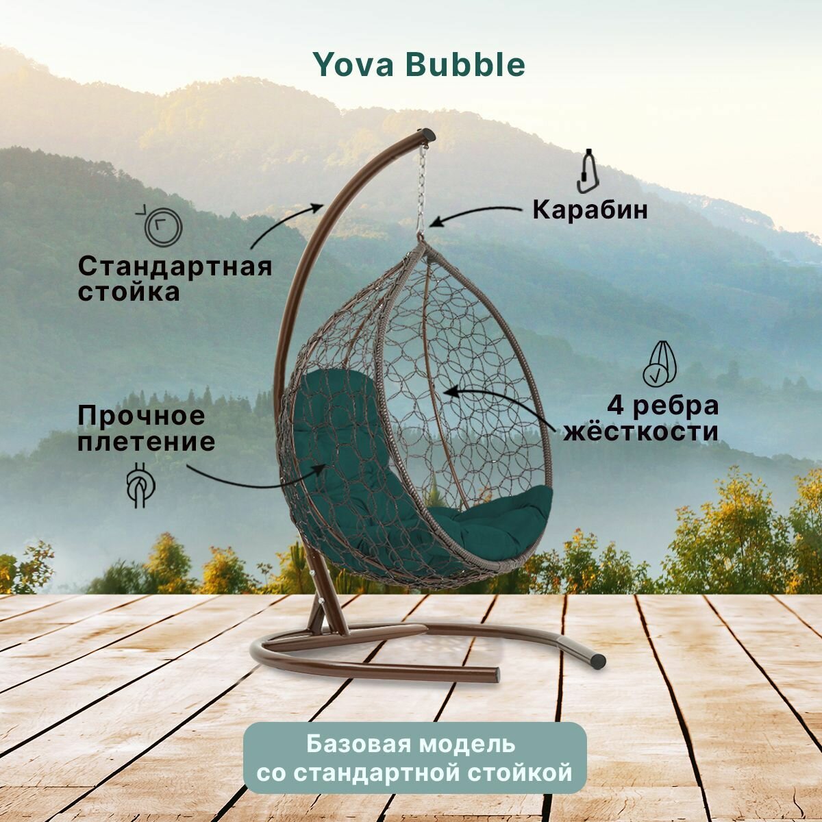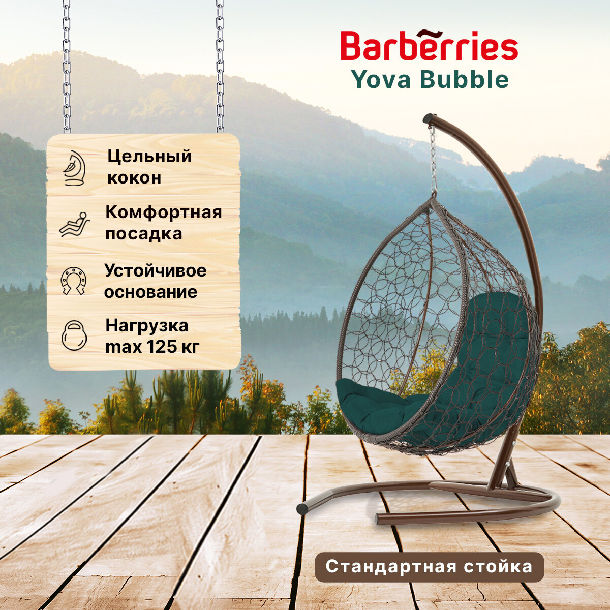 Купить Подвесное кресло кокон садовое Barberries Yova Bubble. Стойка венге до 125 кг, подушка трапеция зеленая