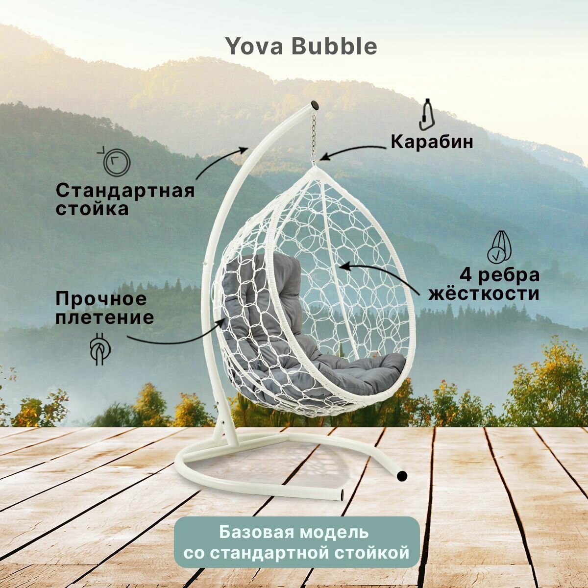 Купить Подвесное кресло кокон садовое Barberries Yova Bubble. Стойка белая до 125 кг, подушка трапеция серая