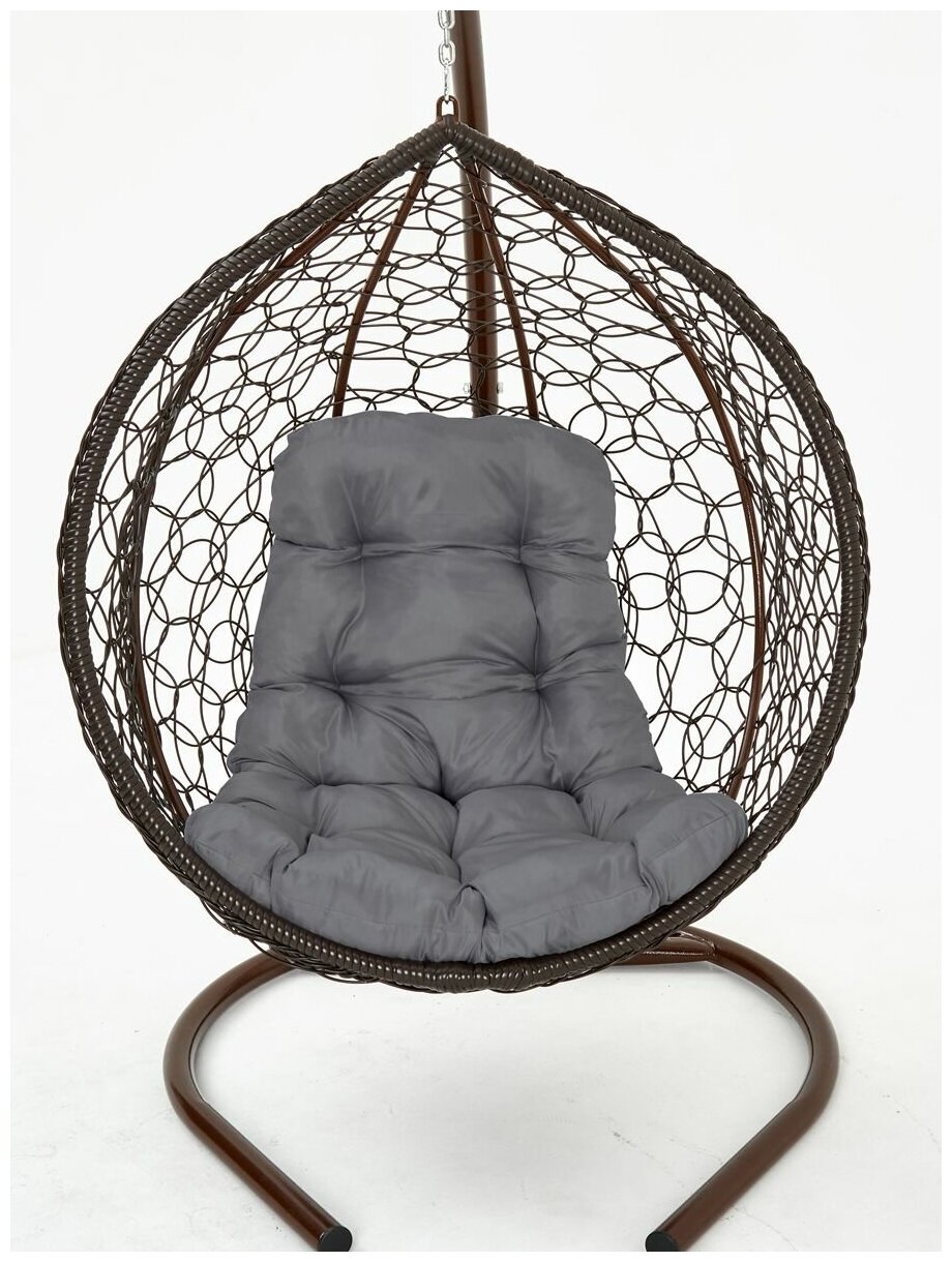 Подвесное кресло кокон садовое Barberries Yova Bubble. Стойка венге до 125 кг, подушка трапеция коричневая