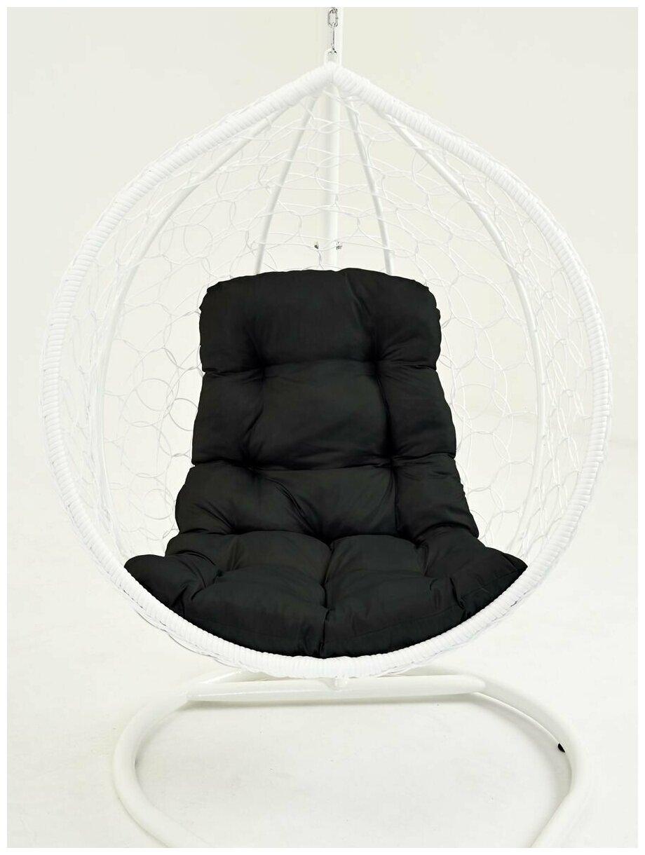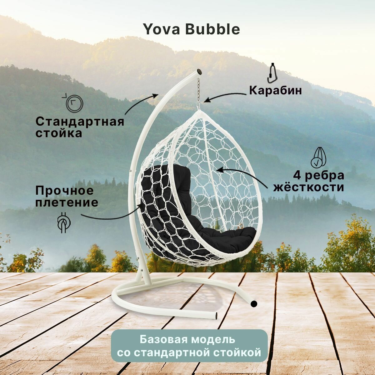Купить Подвесное кресло кокон садовое Barberries Yova Bubble. Стойка белая до 125 кг, подушка трапеция черная