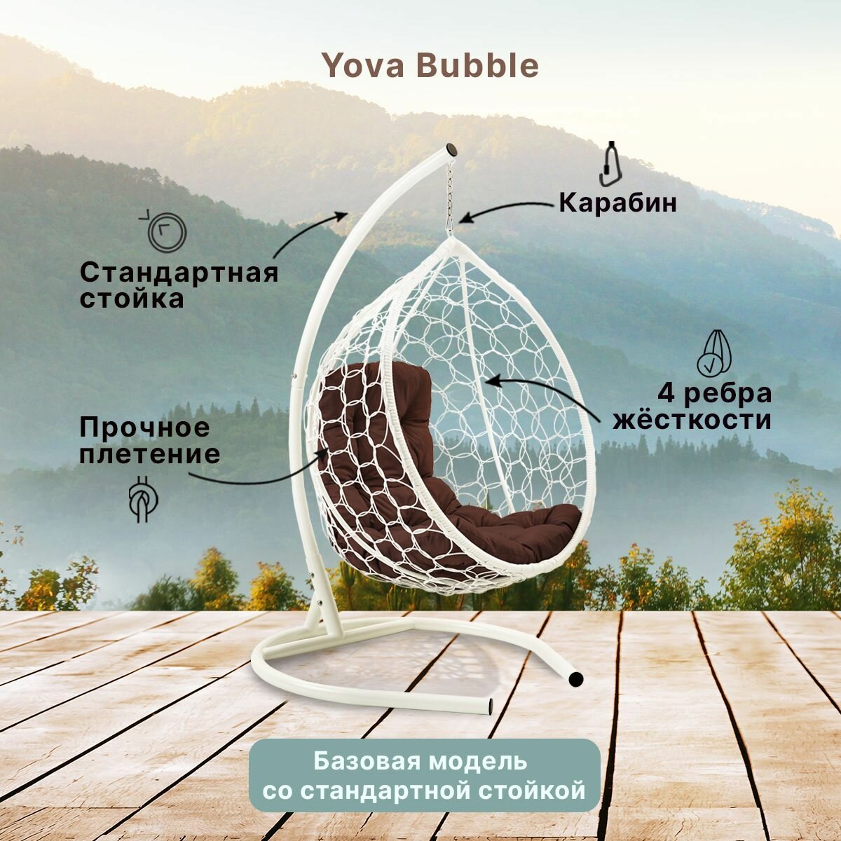 Купить Подвесное кресло кокон садовое Barberries Yova Bubble. Стойка белая до 125 кг, подушка трапеция коричневая