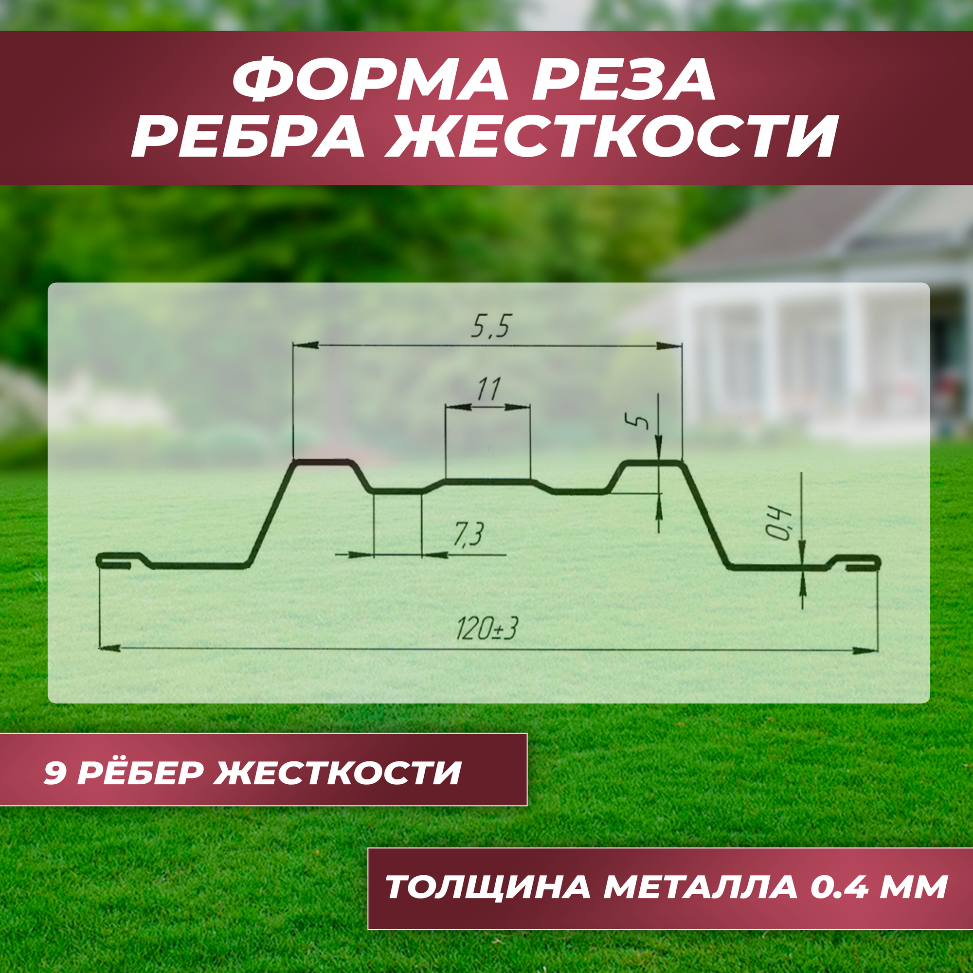Штакетник металлический Практик (двусторонний окрас, цвет винно-красный, высота 1.1 м, ширина планки 12 см, 20 шт., саморезы в комплекте)