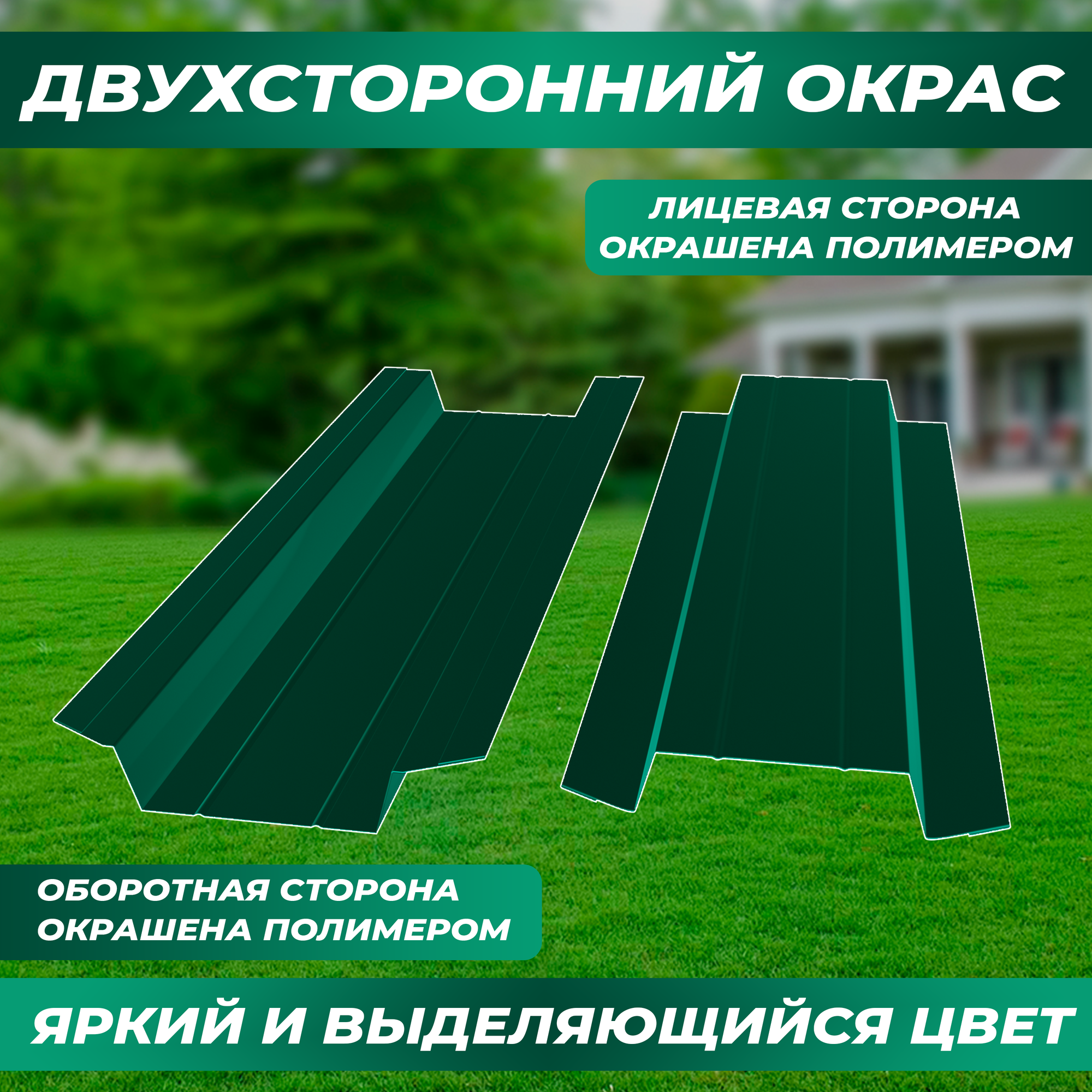 Штакетник металлический Практик (двусторонний окрас, цвет зеленый мох, высота 1.5 м, ширина планки 12 см, 20 шт., саморезы в комплекте)