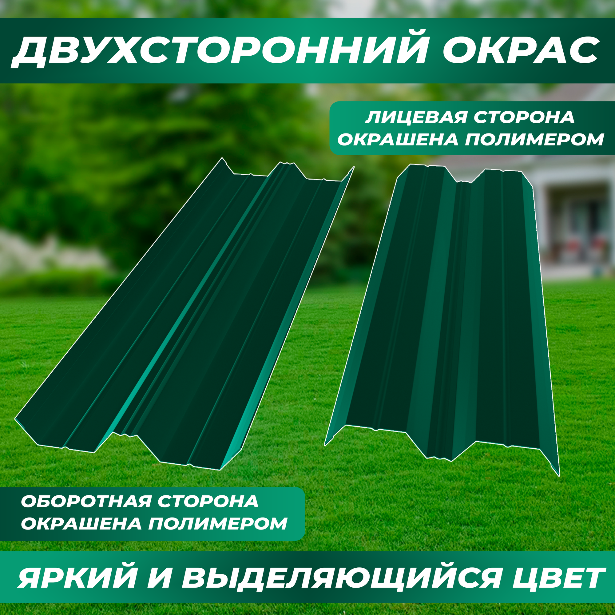 Штакетник металлический Классик (двусторонний окрас, цвет зеленый мох, высота 1.5 м, ширина планки 100 мм, 20 шт., саморезы в комплекте)