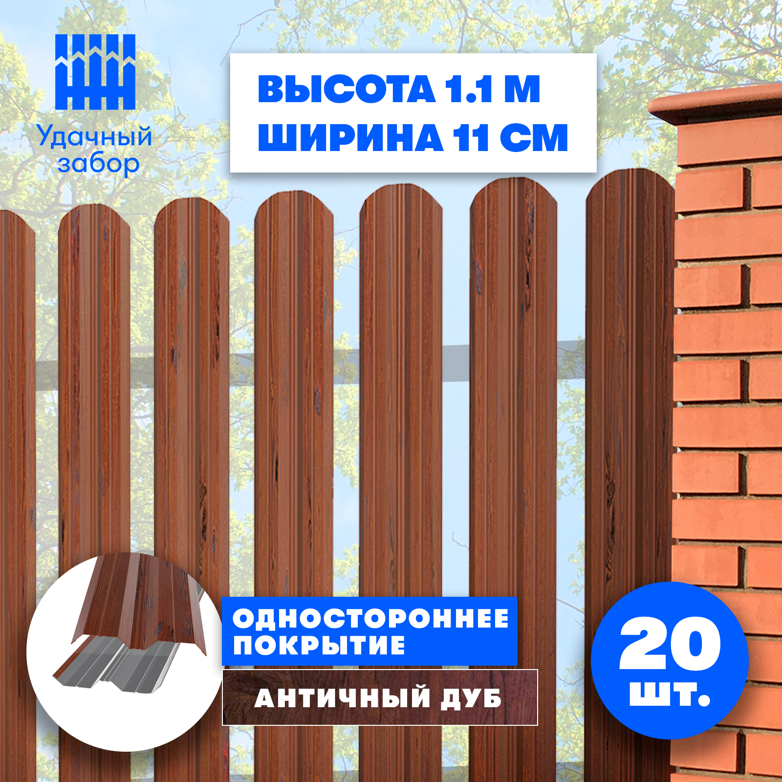 Штакетник металлический Классик (односторонний окрас Принтек - Античный Дуб, высота 1.1 м, ширина планки 10 см, 20 шт., саморезы в комплекте)