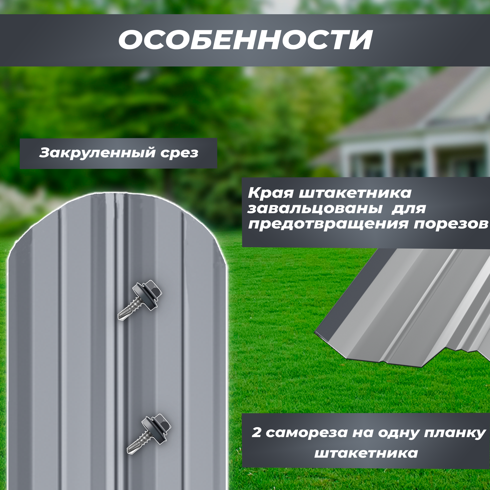 СохранитьШтакетник металлический Классик (односторонний окрас, цвет графитовый серый, высота 1.1 м, ширина планки 100 мм, 20 шт., саморезы в комплекте) интересное: