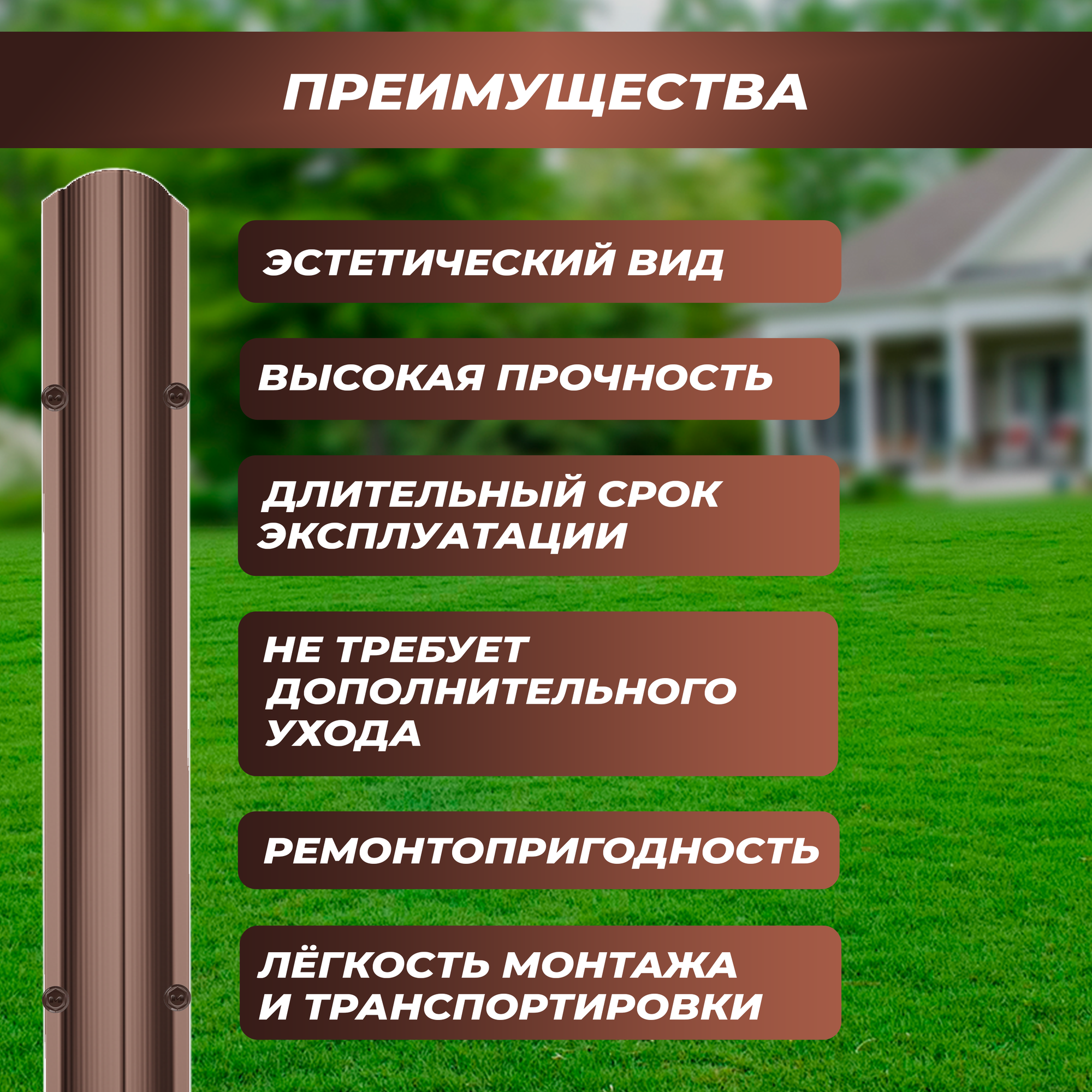 Штакетник металлический Волна (односторонний окрас, цвет шоколадно-коричневый, высота 90 см, ширина планки 11 см, 20 шт., саморезы в комплекте)