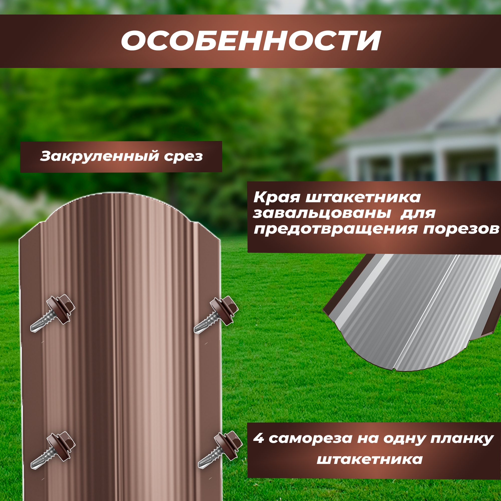 Штакетник металлический Волна (односторонний окрас, цвет шоколадно-коричневый, высота 1.5 м, ширина планки 11 см, 20 шт., саморезы в комплекте)