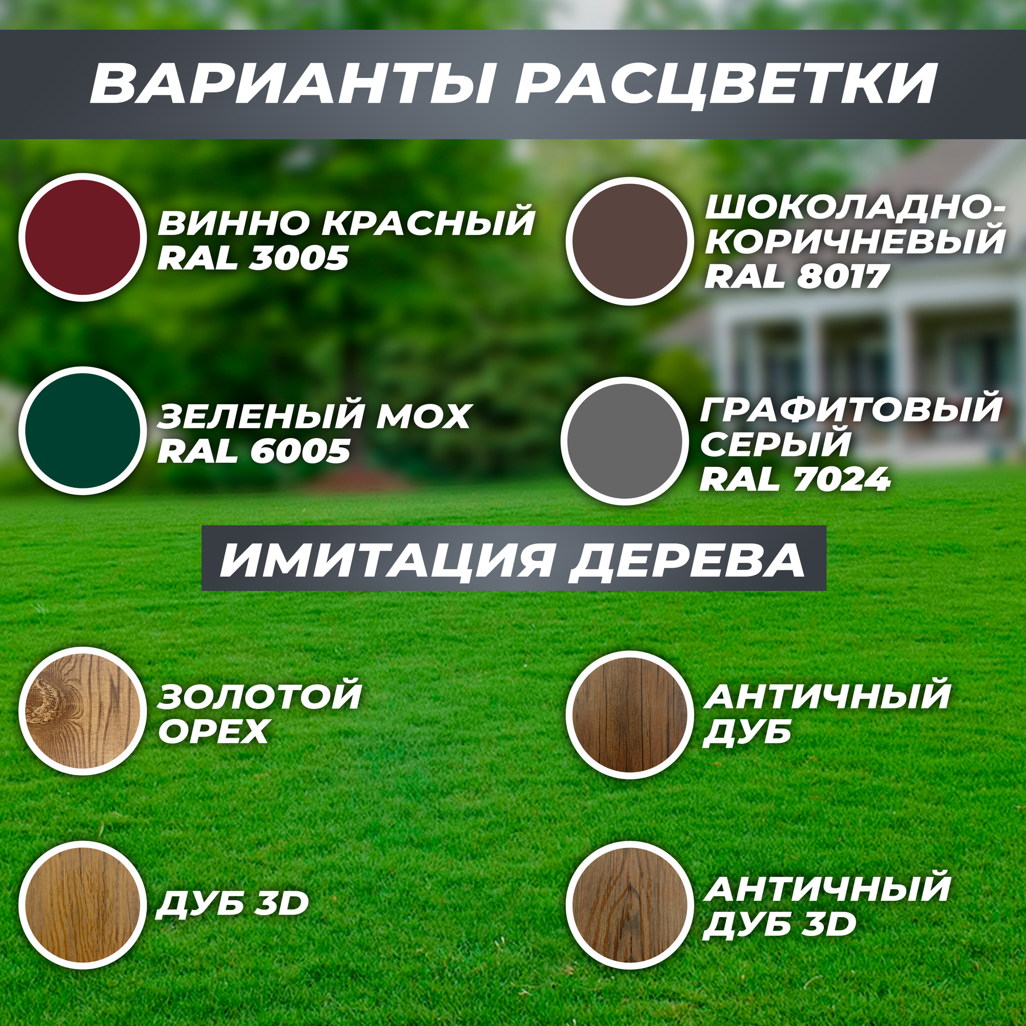 Штакетник металлический Волна (двусторонний окрас, цвет винно-красный, высота 1.3 м, ширина планки 11 см, 20 шт., саморезы в комплекте)