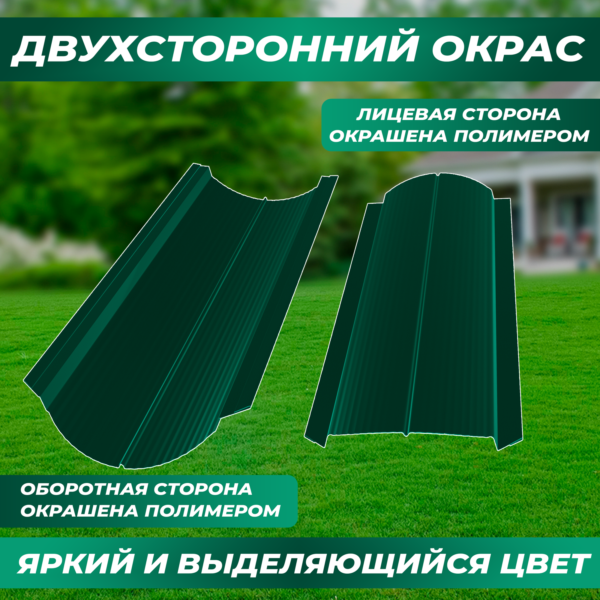 Штакетник металлический Волна (двусторонний окрас, цвет зеленый мох, высота 1.5 м, ширина планки 11 см, 20 шт., саморезы в комплекте)