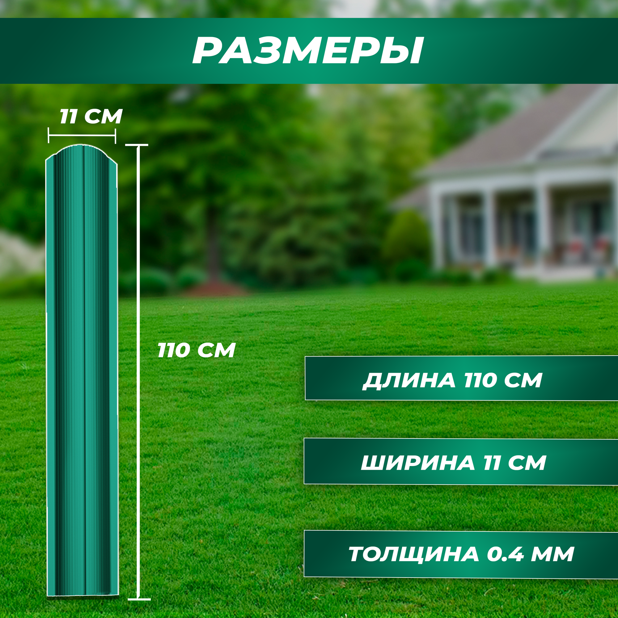 Штакетник металлический Волна (односторонний окрас, цвет зеленый мох, высота 1.1 м, ширина планки 11 см, 20 шт., саморезы в комплекте)