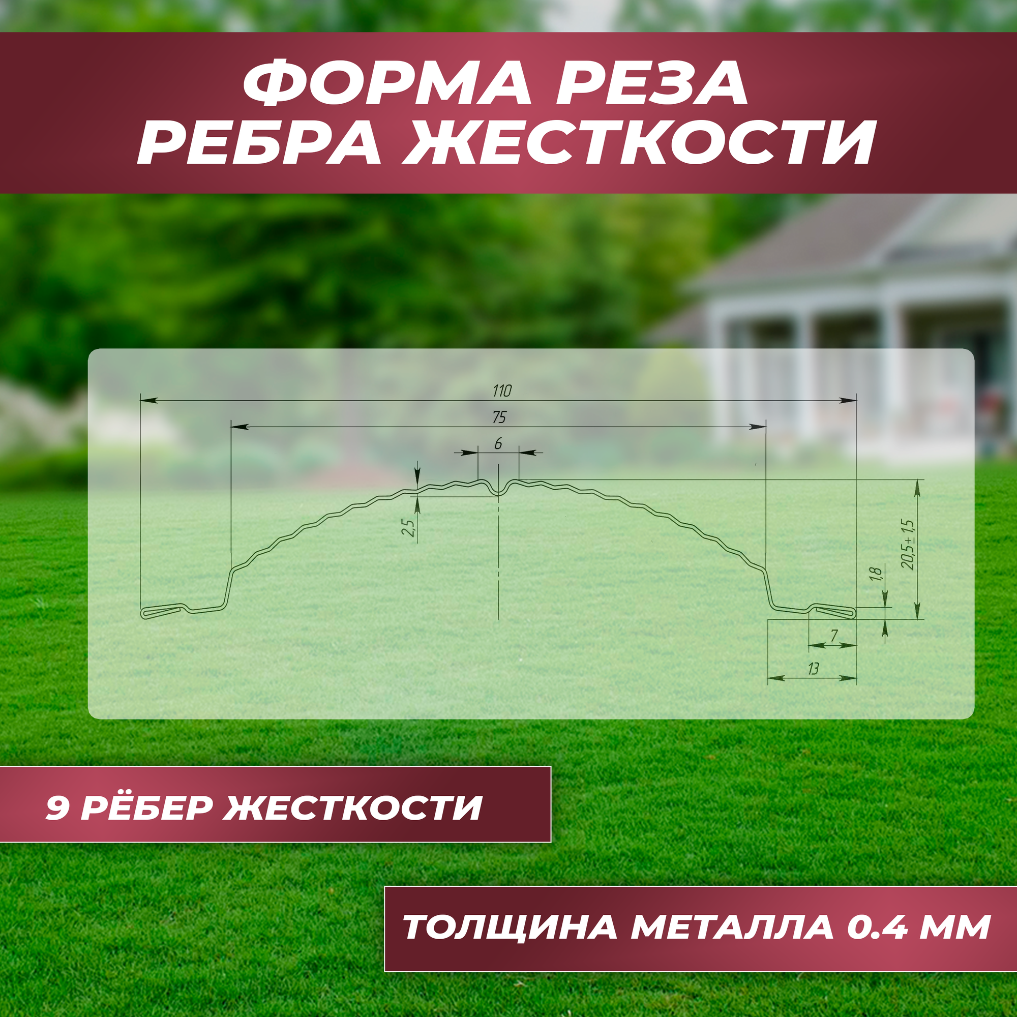 Штакетник металлический Волна (односторонний окрас, цвет винно-красный, высота 1.3 м, ширина планки 11 см, 20 шт., саморезы в комплекте)