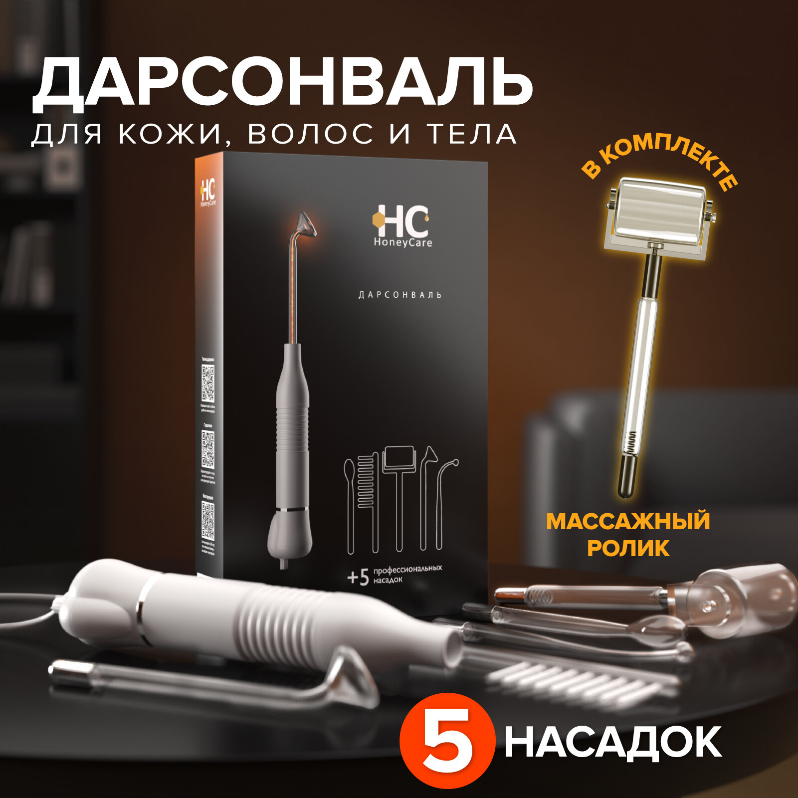 Дарсонваль для волос, лица и для тела с 5 насадками. Аппарат дарсанваль HoneyCare профессиональный уход за лицом в домашних условиях. Дарсонваль для физиотерапии