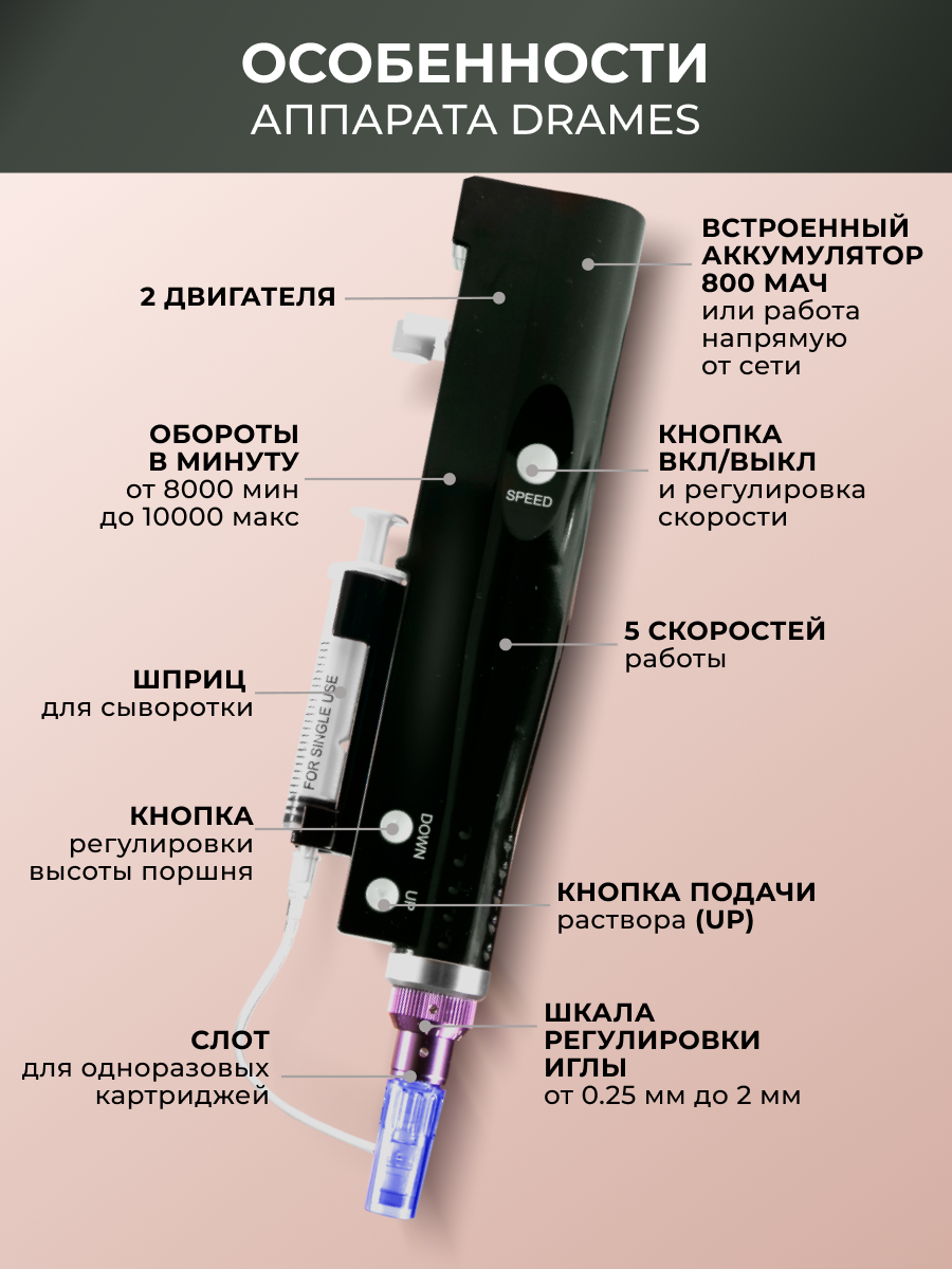 Dr.pen DraMes Medoderma Дермапен / Аппарат для фракционной мезотерапии с подачей раствора / электрический мезороллер для лица, чёрный интересное:
