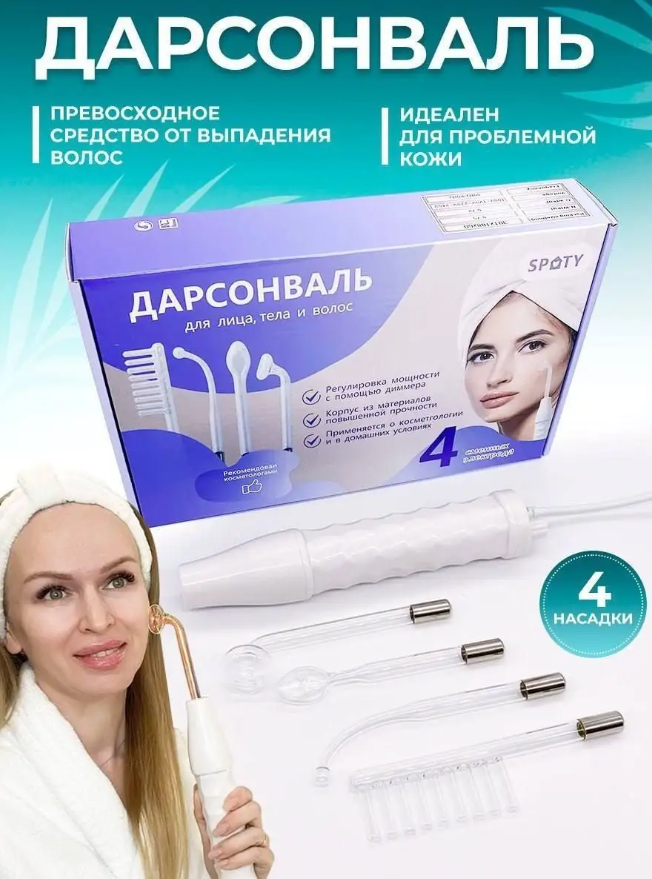 Ниже Вы можете прочитать отзывы на Профессиональный дарсонваль для лица, тела и волос, 4 насадки в комплекте, ознакомится с подробными характеристиками, посмотреть интересные обзоры и фотографии на Профессиональный дарсонваль для лица, тела и волос, 4 насадки в комплекте.